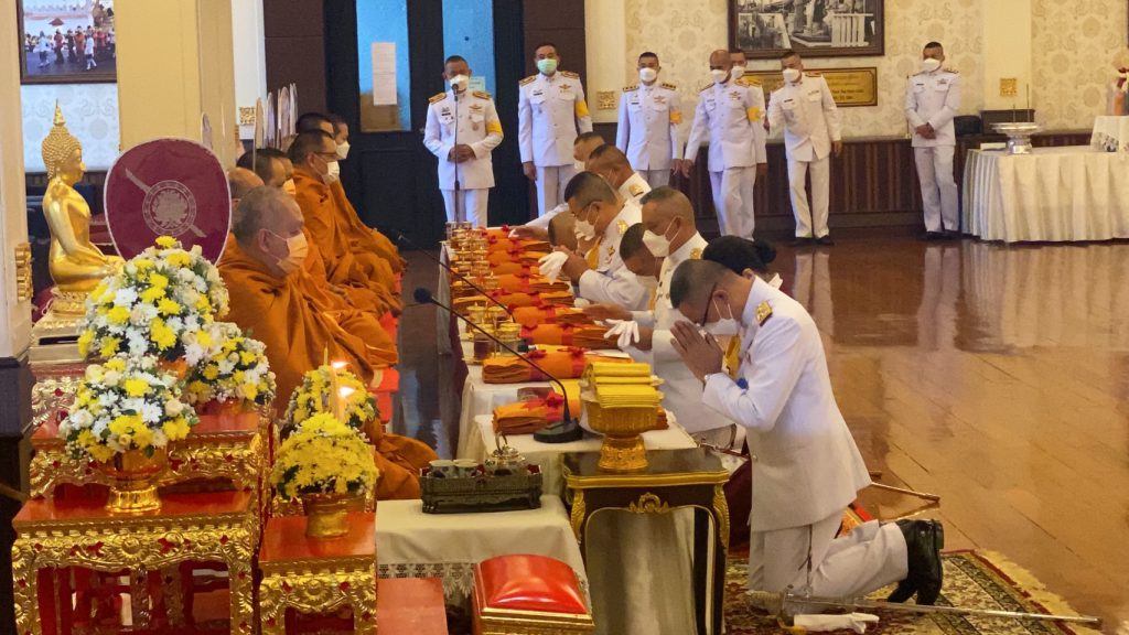 ต่อมา ผบ.ตร. พร้อมด้วยนายกสมาคมตำรวจแม่บ้านตำรวจและคณะได้ร่วมวางพานพุ่มสักการะพระบรมราชานุสาวรีย์รัชกาลที่ 4 พร้อมเป็นประธานพิธีสงฆ์ เจริญพระพุทธมนต์ ทำบุญอุทิศส่วนกุศลให้ กับข้าราชการตำรวจผู้วายชนม์จากการปฏิบัติหน้าที่ เนื่องในโอกาสวันตำรวจ ประจำปี 2564 โดยมี รองผู้บัญชาการตำรวจแห่งชาติ, ผู้ช่วยผู้บัญชาการตำรวจแห่งชาติ, ผู้บัญชาการตำรวจ,ผู้บังคับการ, ข้าราชการตำรวจ, และสมาคมแม่บ้านตำรวจ ร่วมในพิธีฯ อย่างพร้อมเพรียง