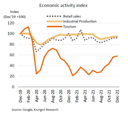 ทั้งนี้ วิจัยกรุงศรีคาดว่ากิจกรรมท่องเที่ยวทั้งในและต่างประเทศในสิ้นปีนี้ จะยังอยู่ต่ำกว่าระดับช่วงก่อนเกิดวิกฤต COVID-19 อยู่ที่ 58% ซึ่งต่ำมากเมื่อเทียบกับกิจกรรมทางด้านผลผลิตภาคอุตสาหกรรมและการค้าปลีกที่สิ้นปีนี้จะกลับมาอยู่ที่ 95% และ 92% ของระดับก่อนเกิดวิกฤต COVID-19 ตามลำดับ มาตรการเพิ่มกำลังซื้อของภาครัฐจึงเป็นปัจจัยบวกที่จะช่วยหนุนการฟื้นตัวของเศรษฐกิจที่ยังมีความเปราะบาง และเมื่อรวมกับมาตรการที่ออกมาก่อนหน้าทั้งมาตรการกระตุ้นการท่องเที่ยวในประเทศ วงเงินกว่า 1 หมื่นล้านบาท กับมาตรการรักษาระดับการจ้างงานให้แก่ธุรกิจ SMEs วงเงิน 3.75 หมื่นล้านบาทแล้ว โดยรวมแล้วในไตรมาสสุดท้ายของปีนี้จึงมีเม็ดเงินจากมาตรการภาครัฐหมุนเวียนเข้าสู่ระบบเศรษฐกิจไม่ต่ำกว่า 1 แสนล้านบาท