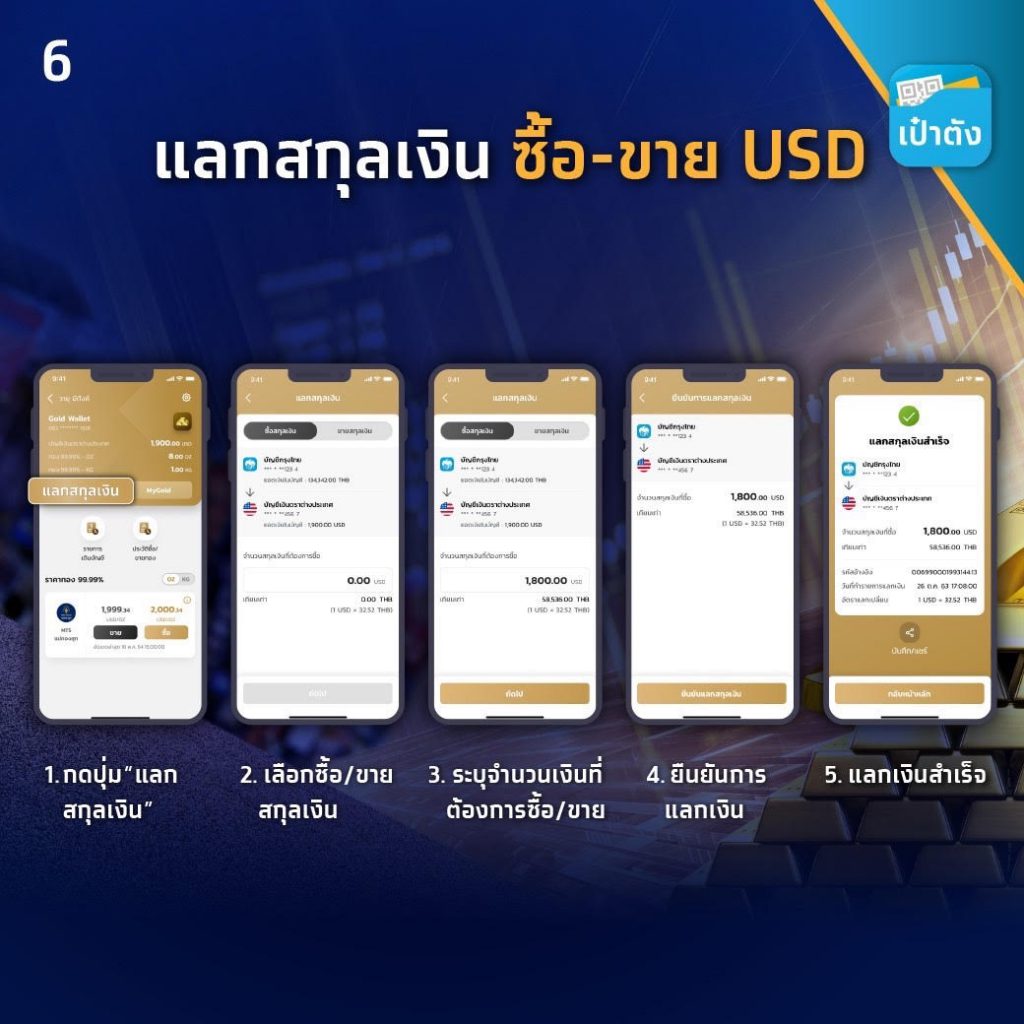 ทั้งนี้ เมื่อมีการซื้อทอง ทองจะถูกเพิ่มเข้าในวอลเล็ตทองที่เปิดกับร้านทองทันที และเมื่อกดขายทอง จะได้รับเงินเข้าบัญชีทันที โดยไม่มีค่าใช้จ่ายหรือค่าธรรมเนียมใดๆ นักลงทุนสามารถซื้อขายทำกำไรจากราคาทองโลก โดยตัดหรือรับเงินในบัญชีดอลลาร์สหรัฐได้โดยตรง ซึ่งสามารถเปิดบัญชีสกุลเงินดอลลาร์ เพื่อซื้อขายเงินดอลลาร์แบบออนไลน์ครบวงจร (eFCD) ได้ทุกวัน ตลอด 24 ชั่วโมง ถือเป็นการให้บริการ eFCD ครั้งแรกของประเทศ โดยไม่มีค่าธรรมเนียม ไม่กำหนดวงเงินขั้นต่ำ ด้วยอัตราแลกเปลี่ยนพิเศษที่ดีกว่าการแลกผ่านเคาน์เตอร์ธนาคาร ซึ่งเป็นการต่อยอดจากความสำเร็จของ Krungthai Travel Card ที่ธนาคารได้ริเริ่มให้บริการเป็นรายแรก