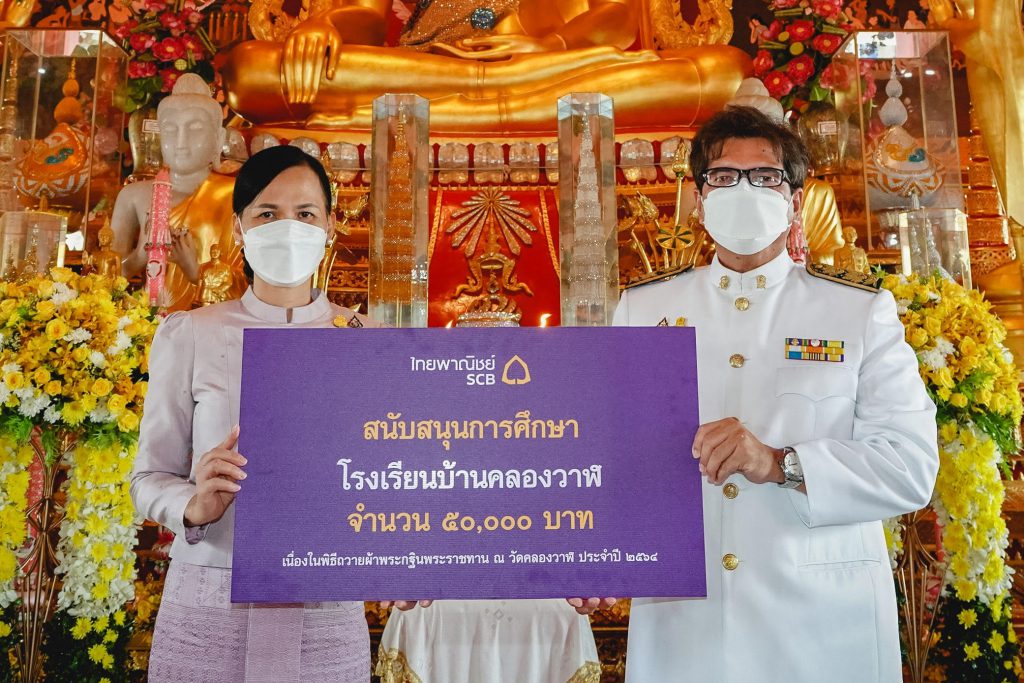 พร้อมนี้ธนาคารฯ ได้มอบเงินสนับสนุนการศึกษาให้แก่โรงเรียนบ้านคลองวาฬ เป็นเงิน 50,000 บาท โดยมี นายพีระชาติ ศรีมหันต์ ผู้อำนวยการโรงเรียนบ้านคลองวาฬ เป็นผู้แทนรับมอบ และมอบถุงน้ำใจไทยพาณิชย์ให้ผู้สูงอายุซึ่งเป็นผู้ป่วยติดเตียง โดยมีนางประทิน เงินเรือง โรจน์ ผู้อำนวยการโรงพยาบาลส่งเสริมสุขภาพตำบลคลองวาฬ เป็นผู้แทนรับมอบ รวมยอดปัจจัยถวายพระราชกุศล เป็นเงิน 4,162,654.40 บาท โดยพิธีจัดขึ้นภายใต้มาตรการป้องกันควบคุมการแพร่ระบาดของโรคติดเชื้อไวรัสโคโรน่า2019 (COVID-19) อย่างเคร่งครัด