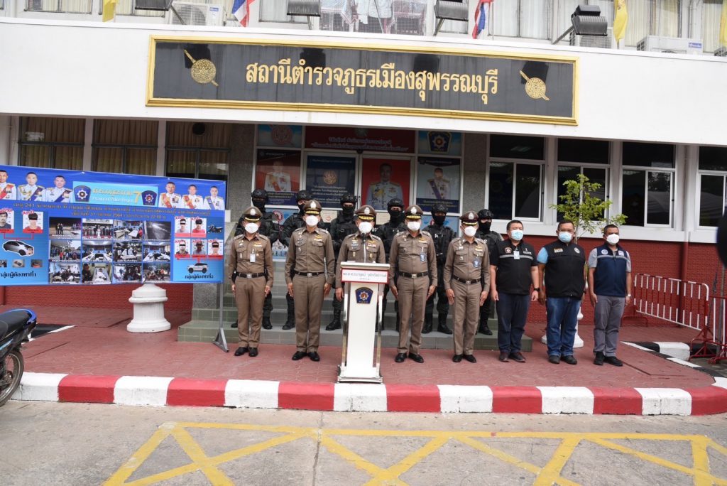 เมื่อวันที่ 13 พฤศจิกายน ที่ สภ.เมือง สุพรรณบุรี พล.ต.ท.ธนายุตม์ วุฒิจรัสธำรงค์ ผู้บัญชาการภาค 7 พล.ต.ต.เกรียงไกร วุฒิพานิช ผบก.ภ.จว.สุพรรณบุรี พ.ต.อ.ธนเดช ตันติอาภา รองผบก.ฯ พ.ต.อ.พีระ อัศวพิบูลย์ผล ผกก.กก.สส.ฯ พล.ต.ต. ประสพชัย มัตสยะวนิชกูล ผบก.สืบสวนตำรวจภูธรภาค 7 พ.ตอ.กฤศ จันทร์สว่าง รักษาการผกก.สภ.เมือง พ.ต.ท.สอาด ดัดธุยะวัตร์ รองผกก.สส.ฯ ได้ร่วมกันแถลงจับกุมตัวผู้ต้องหา จำนวน 5 ราย หลังก่อเหตุ ร่วมกันฆ่าผู้อื่นโดยเจตนา ตามหมายจับของศาลจังหวัดสุพรรณบุรี 1 นายเอ นามสมมุติ อายุ 17 ปี ผู้ต้องหาตามหมายจับที่ 5/2564 ลงวันที่ 1 พฤศจิกายน 2564 (ผู้ต้องหาที่ 1), 2 นายปวีณกร หรือบาส โพธิ์สุข อายุ 24 ปี ผู้ต้องหาตามหมายจับที่ 170/2564 ลงวันที่ 1 พฤศจิกายน 2564 (ผู้ต้องหาที่ 2) จับกุมเพิ่มเติมเมื่อวันที่ 4 พ.ย. 2564 ดังนี้ 1) นายนวราช หรือจุ้ย แสงทินทอง อายุ 25 ปี ผู้ต้องหาตามหมายจับที่ จ.172-174/2564 ลงวันที่ 4 พฤศจิกายน 2564 (ผู้ต้องหาที่ 3) และจับกุมเพิ่มเติมเมื่อวันที่ 12 พ.ย. 2564 ดังนี้, 1.) นายปี นามสมมุติ อายุ 17 ปี ผู้ต้องหาตามหมายจับที่ 6/2564 ลงวันที่ 3 พฤศจิกายน 2564 (ผู้ต้องหาที่ 4), 2.) นายสุพัฒน์ หรือหวาย แตงวงษ์ อายุ 19 ปี ผู้ต้องหาตามหมายจับที่ จ.172-174/2564 ลงวันที่ 4 พฤศจิกายน 2564 (ผู้ต้องหาที่ 5) โดยตั้ง ข้อหาความผิดฐาน ร่วมกันฆ่าผู้อื่นโดยไตร่ตรองไว้ก่อน ร่วมกันพยายามฆ่าผู้อื่นโดยไตร่ตรองไว้ก่อน ร่วมกันมีอาวุธปืน เครื่องกระสุนปืนไว้ในความครอบครอง และร่วมกันพาอาวุธปืนไปในทางหมู่บ้านทางสาธารณะโดยไม่ได้รับอนุญาต พร้อมด้วยของกลางในคดี