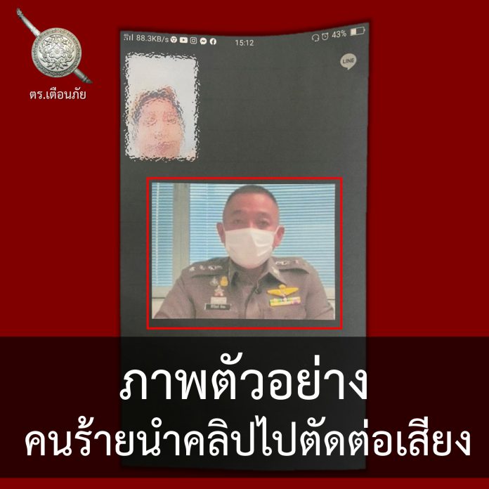 พ.ต.อ.ศิริวัฒน์ ดีพอ รองโฆษกสำนักงานตำรวจแห่งชาติ ไปตัดต่อใส่เสียงของคนร้าย เพื่อไปใช้หลอกลวง ข่มขู่ผู้เสียหาย โดยอ้างว่าเป็นเจ้าหน้าที่ตำรวจ จาก สภ.พนัสนิคม จ.ชลบุรี ขอตรวจสอบเงินในบัญชีธนาคารของผู้เสียหาย ทำให้ผู้เสียหายหลงเชื่อโอนเงินให้กับคนร้าย ซึ่งได้มีการแจ้งความร้องทุกข์ดำเนินคดีไว้แล้ว ที่ สภ.องครักษ์ จ.นครนายก และอยู่ระหว่างการสืบสวนหาตัวคนร้ายเพื่อนำตัวมาดำเนินคดีตามกฎหมาย