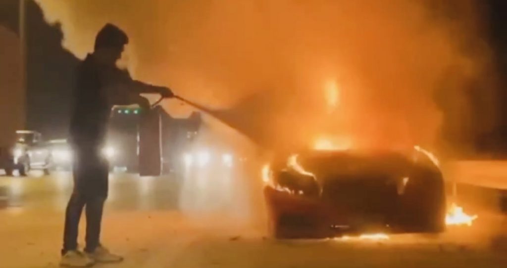 นายกฤติพล อายุ 21 ปี นักศึกษาชั้นปี 4 มหาวิทยาลัยกรุงเทพ เป็นเจ้าของรถ เปิดเผยว่า ก่อนเกิดเหตุขับรถออกมาจากหอพักแถวมหาลัยฯ เพื่อจะเดินทางกลับบ้านที่จ.ชลบุรี ระหว่างทางรู้สึกว่ารถวิ่งสะดุดๆจึงรีบจอดริมถนน จากนั้นก็มีเปลวไฟพวยพุ่งออกมาจากด้านเบาะหลัง ช่วงบริเวณปั้มติ๊กถังน้ำมันรถ แล้วไฟก็ลุกไหม้อย่างรวดเร็วโชคดีที่ออกจากรถทัน โดยยังไม่รู้สาเหตุไฟไหม้ที่แท้จริงนั้น และคงต้องรอผลการตรวจสอบต่อไป