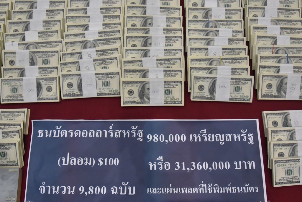 “รองฯ เด่น” นำทีม ‘ศปอส.ตร.’ แถลงรวบแก๊งปลอม US Dollar ยึดแท่นปั๊ม มูลค่ากว่า 30 ล้านบาท