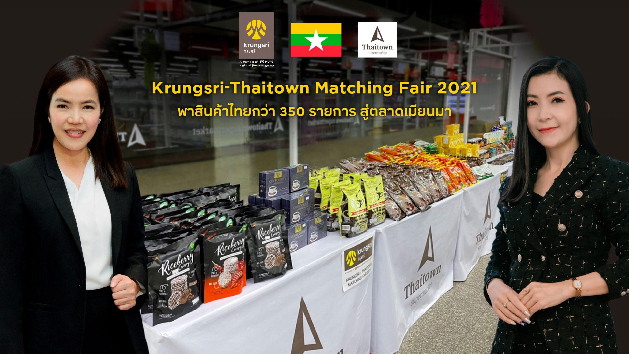 กิจกรรม Krungsri-Thaitown Matching Fair 2021 จัดขึ้นในรูปแบบออนไลน์ระหว่างวันที่ 23 กันยายน – 4 ตุลาคม 2564 เปิดโอกาสให้ผู้ประกอบการที่เป็นผู้ผลิตโดยตรงในธุรกิจประเภทต่างๆ อาทิเช่น เครื่องดื่ม อาหารสด อาหารแช่แข็ง อาหารกึ่งสำเร็จรูป ผลไม้สด ผลไม้แปรรูป เครื่องปรุงรส ขนม เครื่องสำอาง ผลิตภัณฑ์ดูแลผิว อาหารเสริม ของใช้ในบ้าน ของตกแต่งบ้าน เป็นต้น ได้มีโอกาสพบปะและเจรจาธุรกิจกับ Thaitown supermarket ผู้นำเข้าและจำหน่ายสินค้าไทยชั้นนำในเมียนมา กิจกรรมนี้เป็นกิจกรรม Business Matching ที่กรุงศรีร่วมกับ Thaitown supermarket เป็นครั้งแรก โดยเปิดโอกาสให้ผู้ประกอบการได้ทดลองวางสินค้าที่ Thaitown supermarket นับเป็นการต่อยอดกิจกรรมเจรจาจับคู่ธุรกิจให้กับผู้ประกอบการไทย ที่กรุงศรีทำมาอย่างต่อเนื่อง