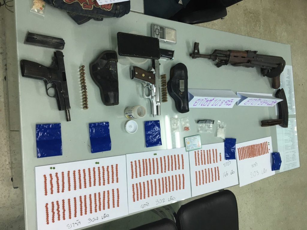 ของกลางที่ 10 ยาเสพติดให้โทษประเภทที่ 1 (ยาบ้า) จำนวน 8 เม็ด น้ำหนักประมาณ 0.64 กรัม, ของกลางที่ 11 ยาเสพติดให้โทษประเภทที่ 1 (ไอซ์) น้ำหนักประมาณ 0.8 กรัม (ชั่งรวมถุง), ของกลางที่ 12 อาวุธปืนยาว อาก้า (เอเค 47) จำนวน 1 กระบอก, ของกลางที่ 13 เครื่องกระสุนปืน เอเค 47 จำนวน 30 นัด, ของกลางที่ 14 ซองบรรจุเครื่องกระสุนปืน จำนวน 1 ซอง, ของกลางที่ 15 ยาเสพติดให้โทษประเภทที่ 1 (ยาบ้า) จำนวน 606 เม็ด, ของกลางที่ 16 ยาเสพติดให้โทษประเภทที่ 1 (ยาบ้า) จำนวน 166 เม็ด, ของกลางที่ 17 ยาเสพติดให้โทษประเภทที่ 1 (ยาบ้า) จำนวน 203 เม็ด, ของกลางที่ 18 ยาเสพติดให้โทษประเภทที่ 1 (ไอซ์) น้ำหนักประมาณ 1.0 กรัม (ชั่งรวมถุง), ของกลางที่ 19 ยาเสพติดให้โทษประเภทที่ 1 (ไอซ์) น้ำหนักประมาณ 1.0 กรัม (ชั่งรวมถุง), ของกลางที่ 20 ยาเสพติดให้โทษประเภทที่ 1 (ไอซ์) น้ำหนักประมาณ 8.0 กรัม (ชั่งรวมถุง), ของกลางที่ 21 กระปุกพลาสติกใส แบบมีฝาปิด จำนวน 1 กระปุก ของกลางที่ 22 กระปุกพลาสติกสีขาวขุ่น แบบมีฝาปิด จำนวน 1 กระปุก, ของกลางที่ 23 ถุงพลาสติกใส แบบกดปิด ดึงเปิด จำนวน 20 ถุง