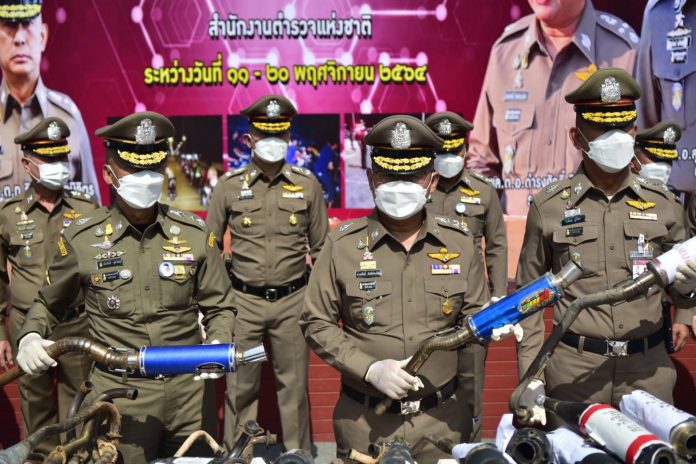 พล.ต.อ.ดำรงศักดิ์ กล่าวว่า จากการประสานข้อมูลกันระหว่าง ศปข.ตร. และตำรวจพื้นที่ ทั้ง บช.น., ภูธรภาค 1-9 ในห้วง 11-20 พ.ย.64 สามารถจับกุมผู้กระทำผิด 1.) แข่งรถในทางและขับรถโดยไม่คำนึงถึงความปลอดภัยฯ และสนับสนุน ให้มีการแข่งรถหรือให้ขับรถโดยไม่คำนึงถึงความปลอดภัย 922 ราย, 2.) ทำทัณฑ์บนกับบิดา มารดา ผู้ปกครอง ตามคำสั่ง หน.คสช. ที่ 22/2558 และ 46/2558 จำนวน 2,575 ราย, 3.) ดำเนินคดี ร้านค้า/ดัดแปลง รถหรืออุปกรณ์ 182 ราย, 4.) ตรวจค้น/ประชาสัมพันธ์ ร้านขาย/ดัดแปลง รถหรืออุปกรณ์ 26,670 ราย, 5.) ตรวจพบท่อไอเสียไม่ได้มาตรฐาน 3,382 ราย, 6.) ความผิดตาม พ.ร.บ.จราจรทางบก และ พ.ร.บ.รถยนต์ ที่เกี่ยวข้อง 50,136 ราย, 7.) ดำเนินคดีกับ Admin Page 13 ราย, 8.) ตรวจยึดรถยนต์ 118 คัน, 9.) รถจักรยานยนต์ 19,046 คัน, 10.) จัดทำประวัติผู้กระทำความผิดและผู้มีพฤติกรรมเสี่ยงที่จะแข่งรถในทาง 9,411 ราย, 11.) กรณีจับกุมผู้ต้องหาส่งฟ้องศาล และศาลมีคำสั่งให้ริบรถของกลาง 8 ราย