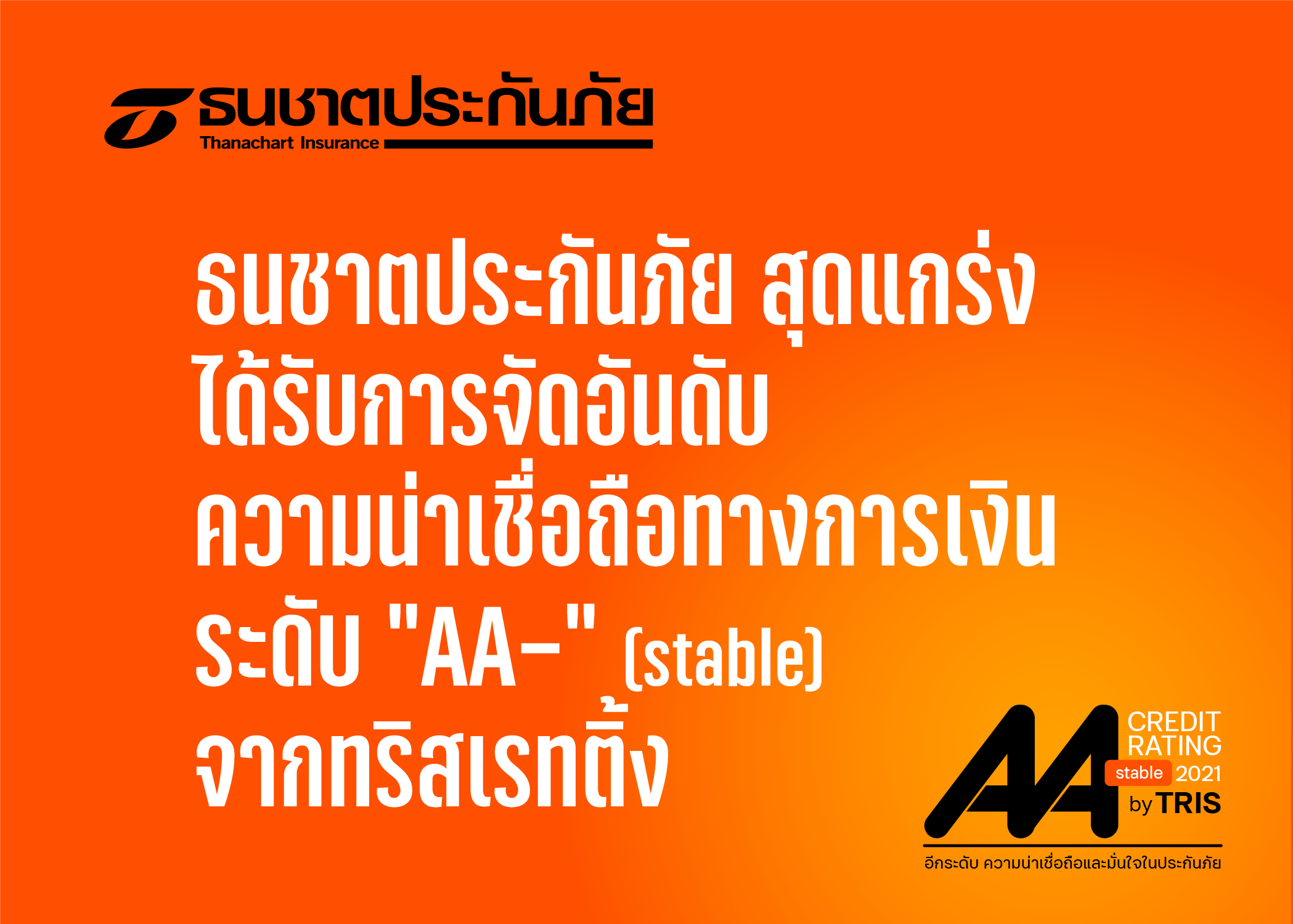 นายพีระพัฒน์ เมฆสิงห์วี กรรมการผู้จัดการ บริษัท ธนชาตประกันภัย จำกัด (มหาชน) เปิดเผยว่า บริษัท ทริสเรทติ้ง จำกัด สถาบันจัดอันดับความน่าเชื่อถือได้จัดอันดับความแข็งแกร่งทางการเงินให้กับธนชาตประกันภัยที่ระดับ “AA-“ พร้อมแนวโน้มอันดับเครดิต “Stable” หรือ “คงที่”โดยให้เหตุผลว่า ธนชาตประกันภัยมีการดำเนินธุรกิจที่อยู่ในระดับที่ดี มีตำแหน่งทางการตลาดอยู่ในกลุ่มบริษัทประกันวินาศภัยชั้นนำ 10 รายแรก รวมถึงมีความชำนาญในด้านการประกันภัยรถยนต์ มีสถานะด้านการเงินที่มีความแข็งแกร่งเนื่องจากมีความสามารถในการทำกำไรที่อยู่ในระดับที่ดี มีเงินกองทุนที่แข็งแกร่งมาก และสภาพคล่องที่อยู่ในระดับสูงภายใต้กรอบการบริหารความเสี่ยงที่เข้มแข็ง ตลอดจนเป็นธุรกิจที่อยู่ภายใต้การกำกับดูแลที่เข้มงวดจากทางการ