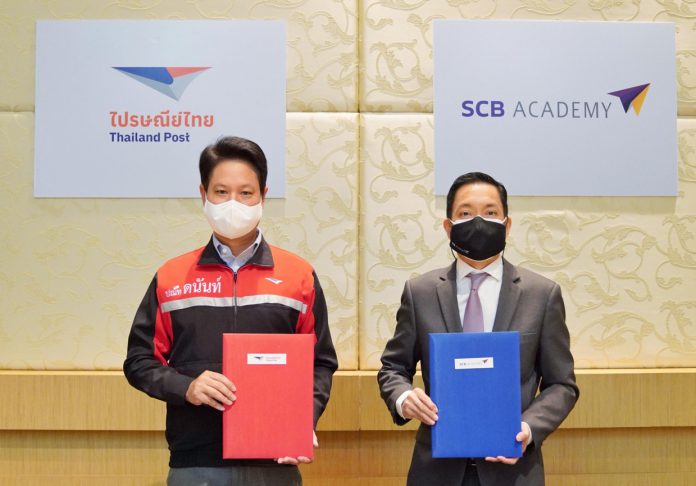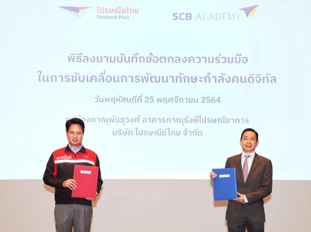 นายวรวัจน์ สุวคนธ์ รองผู้จัดการใหญ่ ผู้บริหารสูงสุด กลุ่มงาน SCB Academy ธนาคารไทยพาณิชย์ เปิดเผยว่า “SCB Academy ร่วมพิธีลงนามบันทึกข้อตกลงความร่วมมือ (MOU) กับ บริษัท ไปรษณีย์ไทย จำกัด (ปณท) ในโครงการพัฒนาทักษะกำลังคนดิจิทัลให้แก่บุคลากร ปณท ทั้งนี้ ภายใต้ข้อตกลงความร่วมมือ SCB Academy จะนำประสบการณ์ในการให้บริการ และสนับสนุนการจัดทำหลักสูตร รวมทั้งนำโปรแกรมสนามทักษะ pmd47 •ในการเตรียมความพร้อมให้บุคลากร ปณท ปรับตัวไปสู่การทำงานในยุค Digital (New Normal) ที่ยึดลูกค้าเป็นศูนย์กลาง และสร้างคุณค่าให้กับลูกค้าได้อย่างแท้จริง นอกจากโปรแกรม pmd47 ทาง ปณท ยังให้ความสนใจหลักสูตรความรู้ด้านการเงิน (Financial Literacy) เพื่อเพิ่มความรู้ และความเข้าใจทางด้านการบริหารการเงินส่วนบุคคล ให้กับบุคลากร ปณท ในทุกระดับชั้น โดย SCB Academy จะนำความรู้ความสามารถในเรื่องการเงินยั่งยืนถ่ายทอดให้แก่บุคลากร ปณท ผ่านการสร้างอีเวนท์ในรูปแบบต่างๆ เพื่อให้บุคลากรได้เข้ามาฟังแนวคิดหรือประสบการณ์จากนวัตกรหรือกูรูทางด้านต่างๆ โดยหวังว่า บุคลากรทุกคนจะมีทักษะและกรอบความคิดใหม่เพื่อพร้อมสำหรับโลกการทำงานและโลกการเงินในยุคดิจิทัล”