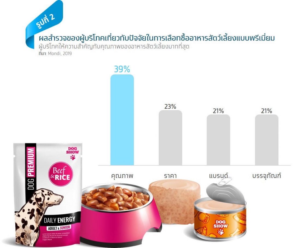 - ผู้เลี้ยงมีแนวโน้มที่จะจ่ายหนัก จ่ายเพิ่มเพื่อให้สัตว์เลี้ยงของตนเองมีคุณภาพชีวิตที่ดีกว่าและมีความสุขเพิ่มขึ้น จึงเป็นโอกาสของผู้ประกอบการที่จะคิดผลิตภัณฑ์ หรือบริการใหม่ๆ เพื่อตอบโจทย์ผู้บริโภคในระดับที่ Premium มากขึ้น เช่น บริการสุขภาพสัตว์เลี้ยงเฉพาะทาง บริการนักสืบสัตว์เลี้ยง ธุรกิจอาหารเสริมสัตว์เลี้ยง ธุรกิจผลิตเฟอร์นิเจอร์สัตว์เลี้ยง และธุรกิจประกันภัยสัตว์เลี้ยง เป็นต้น