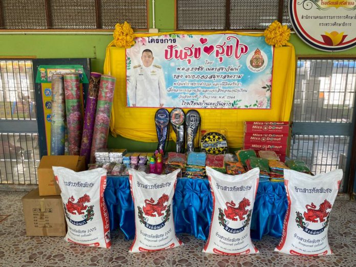 พร้อมด้วยข้าราชการตำรวจ และผู้มีจิตศรัทธา จัด โครงการ ปันสุข สุขใจ ให้เด็กนักเรียน และเด็กพิเศษ ชั้นอนุบาล และประถมศึกษา จำนวน 127 คน