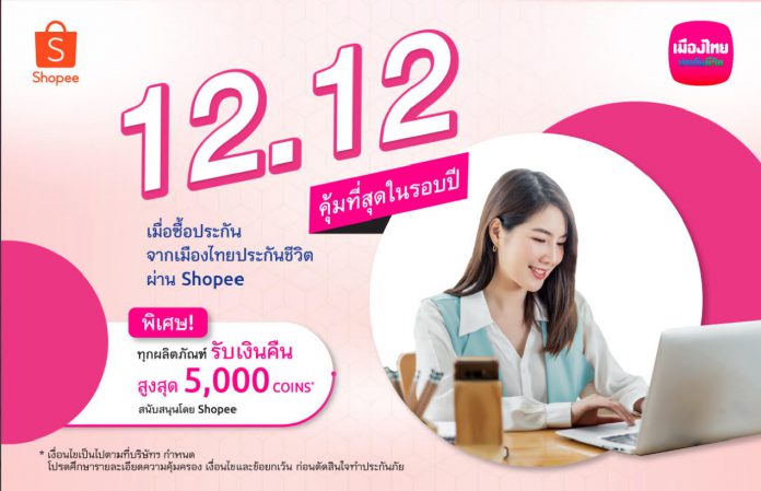 ล่าสุด เมืองไทยประกันชีวิต ร่วมกับ ช้อปปี้ (Shopee) ผู้นำแพลตฟอร์มอีคอมเมิร์ซในภูมิภาคเอเชียตะวันออกเฉียงใต้และไต้หวัน จัดแคมเปญใหญ่ส่งท้ายปี ต้อนรับมหกรรม “Shopee 12.12 Birthday Sale” เพื่อตอบโจทย์ผู้ที่กำลังวางแผนด้านภาษี รวมถึงการวางแผนด้านการออมผ่านผลิตภัณฑ์ประกันชีวิต พร้อมรับโปรโมชันพิเศษ เพียงเลือกซื้อแบบประกันภัยที่ร่วมรายการจากเมืองไทยประกันชีวิตผ่านร้าน “Muang Thai Life Official” บน Shopee Mall รับเงินคืน (Coin Cashback) สูงสุด 5,000 Coins ทุกคำสั่งซื้อโปรโมชันเริ่มแล้วตั้งแต่วันนี้ – 29 ธันวาคม 2564