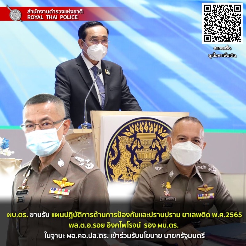 เมื่อวันที่ 10 ธันวาคม 2564 ที่สำนักงานตำรวจแห่งชาติ(ตร.) พล.ต.ต.ยิ่งยศ เทพจำนงค์ โฆษกสำนักงานตำรวจแห่งชาติ เปิดเผยว่า เมื่อวันที่ 9 ธ.ค.64 พล.อ.ประยุทธ์ จันทร์โอชา นายกรัฐมนตรี และรัฐมนตรีว่าการกระทรวงการกลาโหม เป็นประธานพิธีเปิดแผนปฏิบัติการด้านการป้องกันและปราบปรามยาเสพติด พ.ศ.2565 โดย พล.ต.อ.สุวัฒน์ แจ้งยอดสุข ผู้บัญชาการตำรวจแห่งชาติ ได้มอบหมายให้ พล.ต.อ.รอย อิงคไพโรจน์ รอง ผบ.ตร., ผอ.ศอ.ปส.ตร.(ผู้อำนวยการศูนย์อำนวยการป้องกันและปราบปรามยาเสพติด) เป็นผู้แทนเข้าร่วมพิธีฯ นั้น