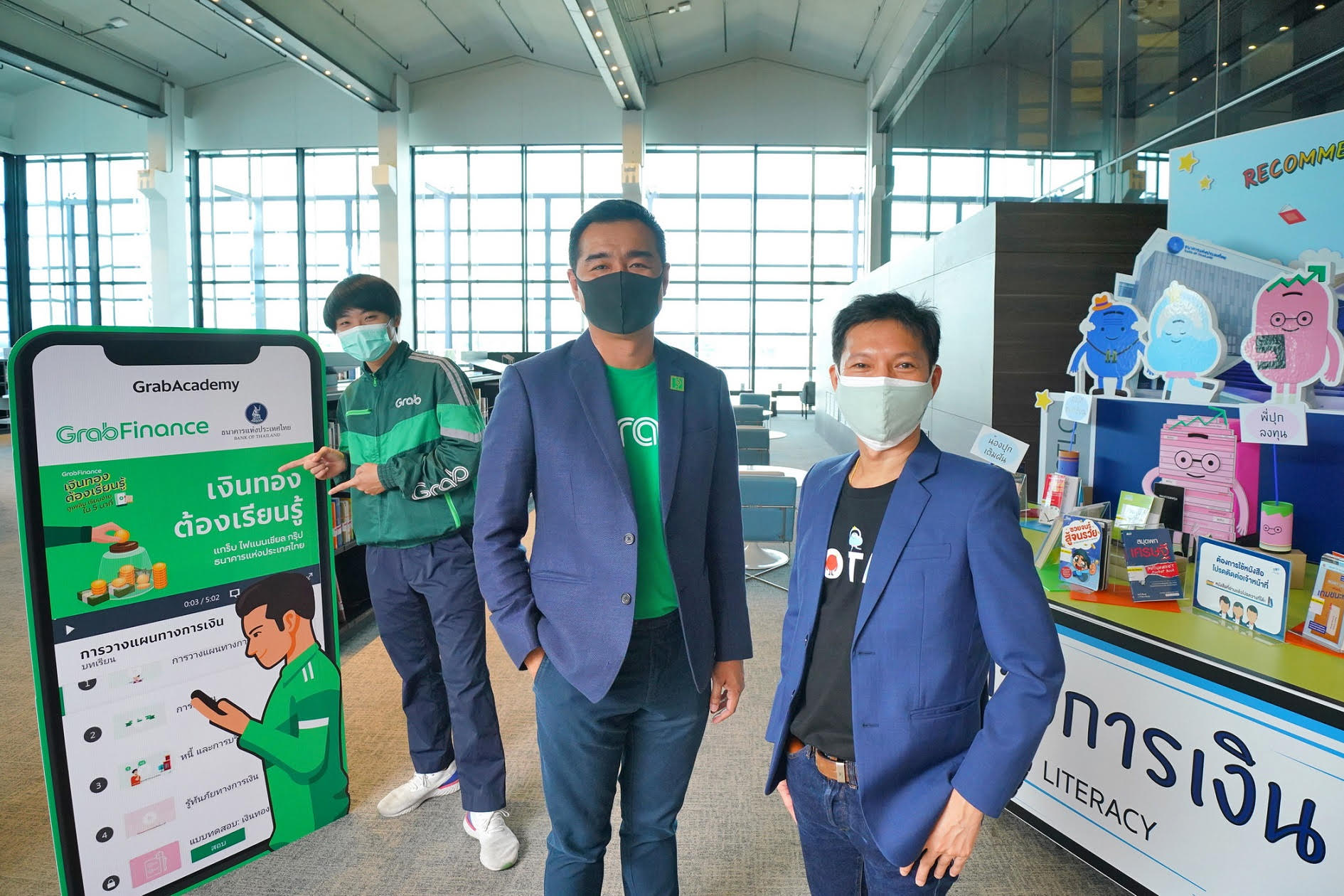 แกร็บ ไฟแนนเชียล กรุ๊ป ประเทศไทย โดย นายวรฉัตร ลักขณาโรจน์ กรรมการผู้จัดการ ร่วมกับ ธนาคารแห่งประเทศไทย (ธปท.) นำโดยนายสมชาย เลิศลาภวศิน ผู้อำนวยการอาวุโสฝ่ายส่งเสริมความรู้ทางการเงิน เปิดตัวคอร์สอบรมออนไลน์ “เงินทองต้องเรียนรู้” เสริมแกร่งองค์ความรู้ด้านการเงินสำหรับพาร์ทเนอร์คนขับแกร็บ ผ่านสื่อวีดิโอที่มีเนื้อหากระชับและเข้าถึงง่าย โดยความร่วมมือนี้เป็นส่วนหนึ่งของโครงการ ‘GrabAcademy ปี 2’ ที่มุ่งพัฒนาทักษะและศักยภาพของพาร์ทเนอร์คนขับแกร็บ พาร์ทเนอร์ร้านค้า และผู้ประกอบการรายย่อย