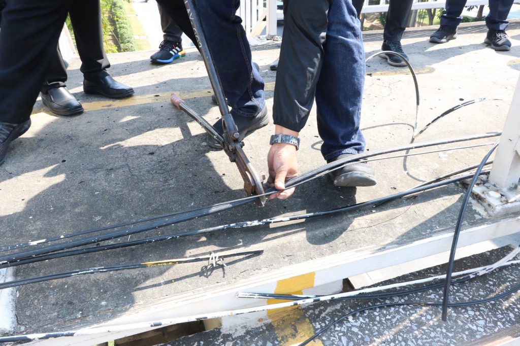 กรุงเทพมหานคร โดยสำนักการจราจรและขนส่ง สำนักการโยธา สำนักงานเขตคลองสาน ได้ร่วมกับสำนักงานคณะกรรมการกิจการกระจายเสียง กิจการโทรทัศน์ และกิจการโทรคมนาคมแห่งชาติ (กสทช.) เข้าทำการตรวจสอบพื้นที่ดังกล่าว พบว่ามีสายสื่อสารพาดขวางบริเวณทางขึ้นลงสะพานลอย อยู่ในลักษณะที่กีดขวางการสัญจร และอาจก่อให้เกิดอุบัติเหตุต่อประชาชนผู้สัญจรได้ ในเบื้องต้น กทม. และ กสทช. ได้ทำการตัดสายสื่อสารดังกล่าวออกพร้อมจัดระเบียบสายสื่อสารบริเวณดังกล่าวให้มีความเป็นระเบียบเรียบร้อยแล้ว และเพื่อเป็นการป้องกันและแก้ไขปัญหาสายสื่อสารกีดขวางทางสัญจรในพื้นที่อื่นๆ