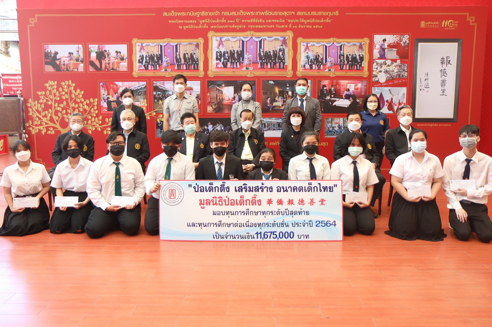 วันที่ 27 ธันวาคม 2564 เวลา 10.00 น. มูลนิธิป่อเต็กตึ๊ง โดย นายวิเชียร เตชะไพบูลย์ ประธานกรรมการมูลนิธิฯ เป็นประธานในพิธี พร้อมด้วยนายสัก กอแสงเรือง รองประธานกรรมการ นางศิริกุล โอภาสวงศ์ กรรมการและเลขาธิการ และคณะกรรมการมูลนิธิฯ ร่วมในพิธีมอบเงินทุนต่อเนื่องในทุกระดับชั้น และทุนทุกระดับปีสุดท้ายแก่เยาวชนที่ประพฤติดีแต่ขาดแคลนทุนทรัพย์ในระดับชั้นมัธยมศึกษา อาชีวศึกษา และอุดมศึกษา รวม 119 สถาบัน จำนวน 836 ทุน รวมเป็นเงินทั้งสิ้น 11,675,000 บาท (สิบเอ็ดล้านหกแสนเจ็ดหมื่นห้าพันบาทถ้วน) เนื่องจากสถานการณ์การแพร่ระบาดของโรคติดเชื้อไวรัสโคโรนา 2019 (COVID-19) มูลนิธิฯ ได้จัดให้มีมาตรการการป้องกันการแพร่ระบาดของไวรัสภายในพื้นที่อย่างเข้มข้น รวมทั้งมีการปรับเปลี่ยนรูปแบบการมอบทุนฯ โดยประสานผู้แทนจากสถาบันการศึกษาแต่ละแห่ง เป็นตัวแทนรับมอบทุนการศึกษา ระหว่างวันที่ 27-29 ธันวาคม 64 ณ มูลนิธิป่อเต็กตึ๊ง พลับพลาไชย กรุงเทพฯ