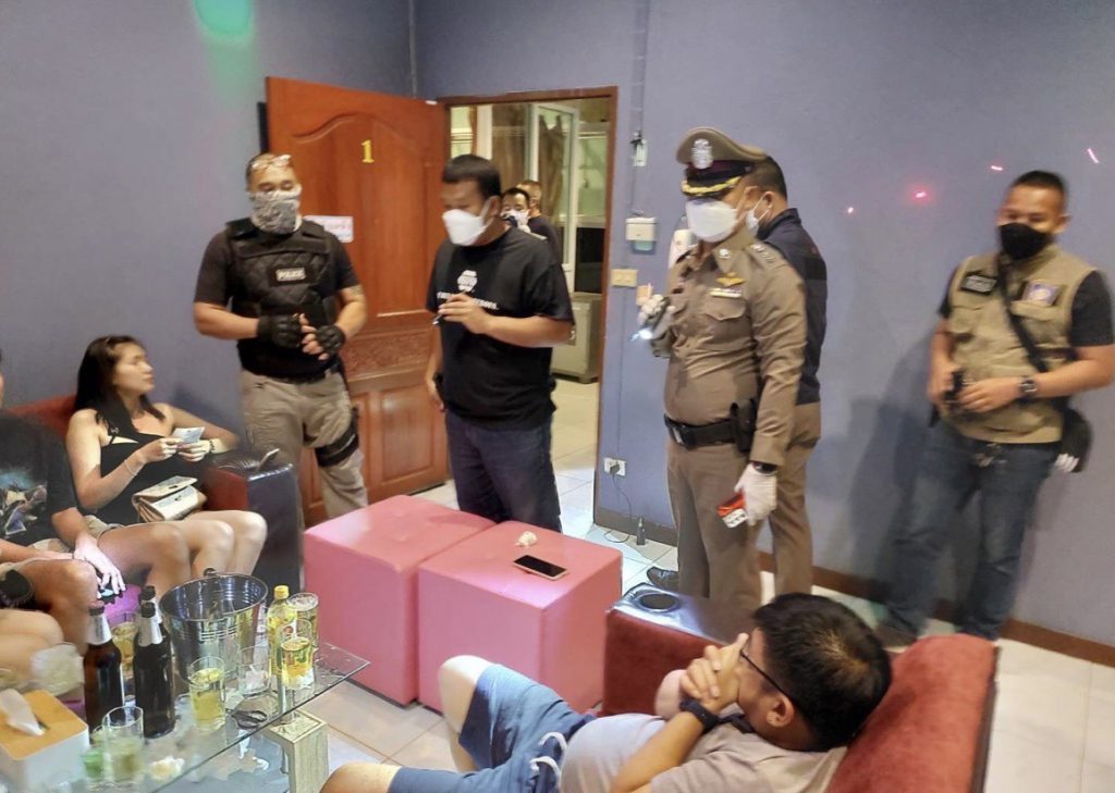 จากการตรวจสอบ พบว่า สถานที่แห่งนี้เป็นโกดังร้างก่อนจะมีการปรับปรุงอาคารให้เป็นสถานบริการ มีสาวสวยนั่งดริ้งนั่งบริการ ซึ่งภายในแบ่งแยกเป็นโซนๆ ห้องโถงใหญ่ และจัดแบ่งเป็นห้องวีไอพี โดยในแต่ละห้องพบมีนักท่องเที่ยวอยู่ห้องละ 5-8 คน รวมทั้งหมด 55 คน แบ่งเป็น ชาย 32 คน หญิง 23 คน โดยเป็นคนไทย 50 คน และเป็นคนกัมพูชา 5 คน จากการตรวจสอบภายในร้าน พบยาเคตามีน ยาอี วางทิ้งอยู่บนพื้น และเบาะโซฟา จากนั้นจึงได้นำตัวนักท่องเที่ยวราตรีทั้งหมด เข้าทำการตรวจปัสสาวะหาสารเสพติด และพบว่ามีนักท่องเที่ยวเสพยาจำนวน 42 คน และไม่พบสารเสพติด จำนวน 13 คน