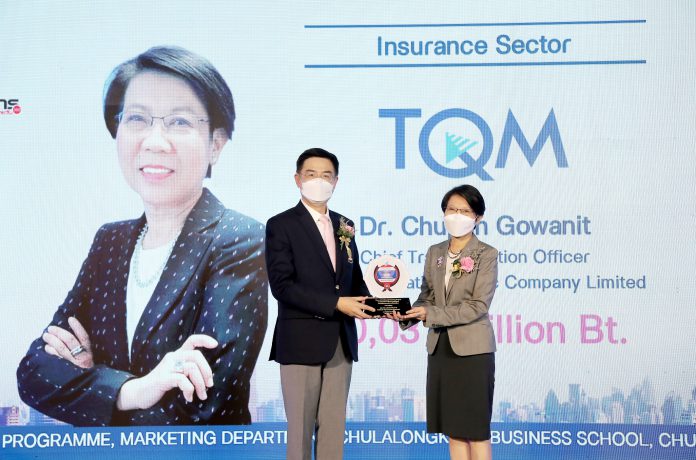 บริษัท ทีคิวเอ็ม คอร์ปอเรชั่น จำกัด (มหาชน) หรือ TQM ได้รับรางวัลมูลค่าแบรนด์องค์กรสูงสุด ‘Thailand’s Top Corporate Brands 2021’ หมวดธุรกิจประกันภัยและประกันชีวิต ด้วยมูลค่าแบรนด์ 20,031 ล้านบาท ในงาน Asean Thailand ‘s Top Corporate Brands 2021 ซึ่งเป็นรางวัลที่มอบให้แก่องค์กรที่มีมูลค่าแบรนด์องค์กรสูงสุดของประเทศไทยและในอาเซียน ประจำปี 2564 จัดโดยหลักสูตรปริญญาโท สาขาการจัดการแบรนด์และการตลาด คณะพาณิชยศาสตร์และการบัญชี จุฬาลงกรณ์มหาวิทยาลัย ร่วมกับตลาดหลักทรัพย์แห่งประเทศไทย ซึ่งจัดต่อเนื่องเป็นปีที่ 12 โดยมีดร.ชูพรรณ โกวาณิชย์ ประธานบริหารทรานส์ ฟอร์เมชั่น เป็นตัวแทนเข้ารับรางวัลอันทรงเกียรติในครั้งนี้ เมื่อวันที่ 20 มกราคม 2565 ณ จุฬาลงกรณ์มหาวิทยาลัย