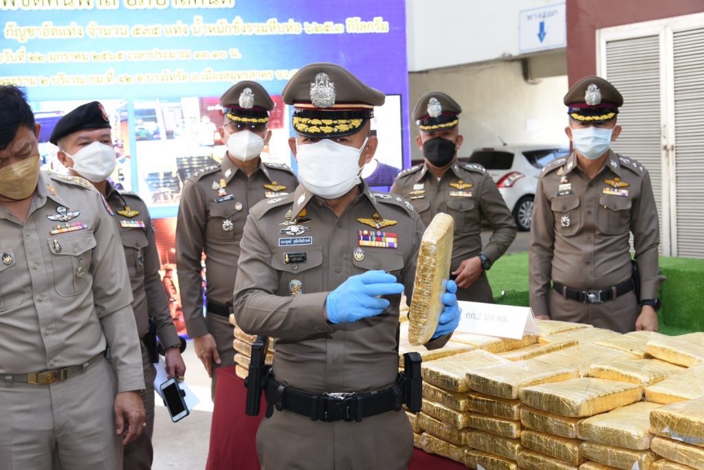 “ผบช.ภ.7” นำทีม แถลงรวบแก๊งค์ค้ากัญชารายแท่งใหญ่ กว่าครึ่งตัน ขณะเตรียมขนส่งขายในพื้นที่ภาคใต้