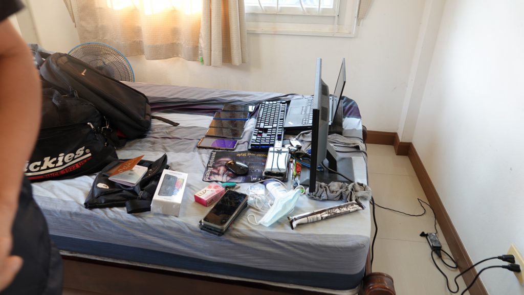 ผลการตรวจค้นพบหลักฐานสำคัญ 1.) คอมพิวเตอร์ 1 เครื่อง ซึ่งยังค้างหน้าจอโปรแกรมดูระบบ เว็บไซต์ JOKER898TH และ OMG777, 2.) หน้าจอคอมพิวเตอร์ 3 จอ3. โทรศัพท์มือถือ 17 เครื่อง4. คอมพิวเตอร์โน๊ตบุ๊ค, 3.) เครื่อง ซึ่งยังค้างหน้าจอโปรแกรมดูระบบ เว็บไซต์ JOKER898TH และ OMG7775. สมุดบัญชีธนาคาร 1 เล่ม