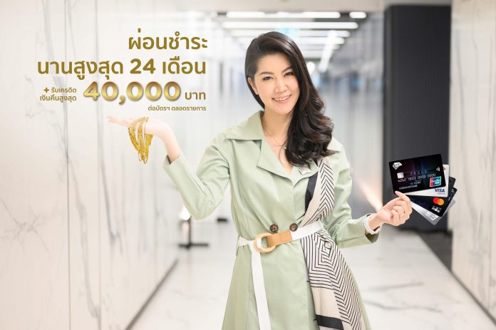 1) ผ่อนชำระทองรูปพรรณกับบัตรเคทีซี นานสูงสุด 24 เดือน รับเครดิตเงินคืนสูงสุด 40,000 บาท โดยมีรายละเอียดดังนี้