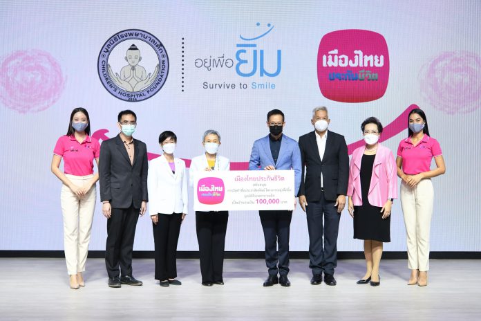 นายสาระ ล่ำซำ ประธานเจ้าหน้าที่บริหาร พร้อมด้วยผู้บริหาร บริษัท เมืองไทยประกันชีวิต จำกัด (มหาชน) ร่วมสนับสนุนการจัดทำสื่อประชาสัมพันธ์ ให้แก่ มูลนิธิโรงพยาบาลเด็ก เป็นจำนวนเงิน 100,000 บาท ภายใต้ “โครงการอยู่เพื่อยิ้ม” เพื่อเชิญชวนให้ประชาชนทั่วไปร่วมบริจาคเงินในการจัดซื้ออุปกรณ์ครุภัณฑ์สำหรับผู้ป่วยเด็กพิการทางการเคลื่อนไหวและสมอง โดยมี พญ.พนิดา ศรีสันต์ รองผู้อำนวยการด้านการแพทย์ สถาบันสุขภาพเด็กแห่งชาติมหาราชินี และพญ.อุบลวรรณ วัฒนาดิลกกุล รองหัวหน้าศูนย์เชี่ยวชาญ ด้านเด็กพิการทางการเคลื่อนไหว สถาบันสุขภาพเด็กแห่งชาติมหาราชินี รับมอบ ณ เมืองไทยประกันชีวิต สำนักงานใหญ่ เมื่อวันก่อน