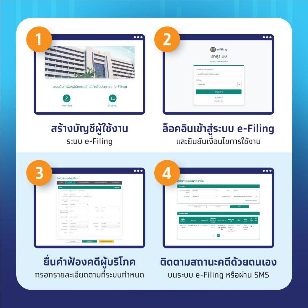 ในการต่อยอดระบบ e-Filing ในการยื่นคำฟ้องคดีผู้บริโภคประเภทซื้อขายออนไลน์ รองรับการยื่นคำฟ้องจากผู้เสียหายทั่วประเทศ ซึ่งถือเป็นครั้งแรกในการให้บริการประชาชนสามารถยื่นคำร้องผ่านเว็บไซต์ด้วยตนเองไม่มีค่าใช้จ่าย ไม่ต้องมีทนายความและไม่ต้องมาศาล