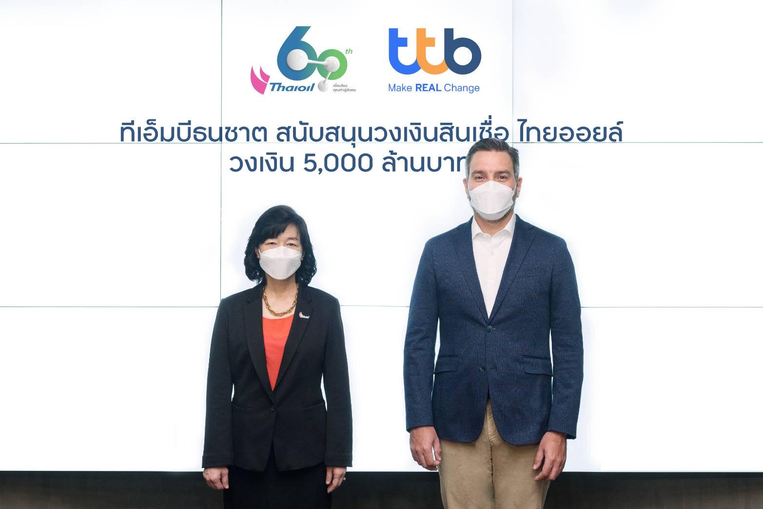 ทีเอ็มบีธนชาต หรือ ทีทีบี (ttb) สนับสนุนสินเชื่อระยะยาว วงเงิน 5,000 ล้านบาท แก่ บริษัท ไทยออยล์ จำกัด (มหาชน) ทั้งนี้ ไทยออยล์ซึ่งเป็นผู้ประกอบธุรกิจการกลั่นและจำหน่ายนํ้ามันปิโตรเลียมที่ใหญ่ที่สุดในประเทศไทย และเป็นโรงกลั่นที่มีประสิทธิภาพอยู่ในระดับชั้นนำแห่งหนึ่งในภูมิภาคเอเชียแปซิฟิก มีแผนสร้างความเติบโตจากพื้นฐานความแข็งแกร่งของธุรกิจโรงกลั่น ขยายสู่ธุรกิจปิโตรเคมี และเพิ่มโอกาสการลงทุนในกลุ่มอุตสาหกรรมใหม่ที่เน้นการใช้เทคโนโลยีและนวัตกรรม (New S-Curve) เพื่อสร้างรายได้ที่มั่นคงและยั่งยืนให้กับบริษัท อันเป็นรากฐานสำคัญของเศรษฐกิจของไทย