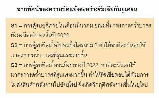 (3) การสู้รบยืดเยื้อและขยายขอบเขตไปยังประเทศอื่นจนถึงกลางปี 2565 ชาติตะวันตกใช้มาตรการคว่ำบาตรรุนแรงมากขึ้น ทำให้รัสเซียตอบโต้ด้วยการยุติการส่งออกสินค้าพลังงานไปยังยุโรป จนนำไปสู่วิกฤตพลังงานขึ้นในยุโรป