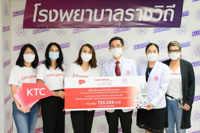 เคทีซีเป็นตัวแทนมอบเงิน 755,555 บาท จากโครงการ Love & Share ปีที่ 8 สมทบทุนเข้าโรงพยาบาลราชวิถี