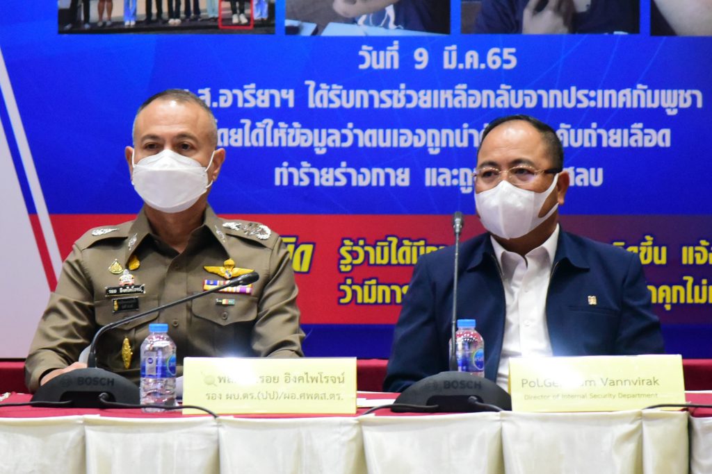 ด้าน พล.ต.ท.สุรเชษฐ์ กล่าวว่า ในการช่วยเหลือคนไทยที่ถูกบังคับใช้แรงงานในประเทศกัมพูชานั้น ได้รับการสนับสนุนจากหน่วยงานบังคับใช้กฎหมายของกัมพูชาจนสามารถช่วยเหลือคนไทยได้กว่า 700 คน ในครั้งนี้กลับมีคนไทยสร้างเรื่องราวที่สร้างความตื่นตระหนกให้กับทั้งคนไทยและชาวต่างชาติ แต่ด้วยการประสานความร่วมมืออันดีระหว่างสำนักงานตำรวจแห่งชาติไทยกับหน่วยงานบังคับใช้กฎหมายของกัมพูชา ทำให้การตรวจสอบข้อมูลและพยานหลักฐานต่างๆ เป็นไปด้วยความรวดเร็วและมีประสิทธิภาพ ต่อไปจะกำชับการปฏิบัติของเจ้าหน้าที่เกี่ยวกับกระบวนการการตรวจสอบข้อมูลและการคัดแยกเหยื่อให้มีมาตรฐานและประสิทธิภาพให้มากยิ่งขึ้น