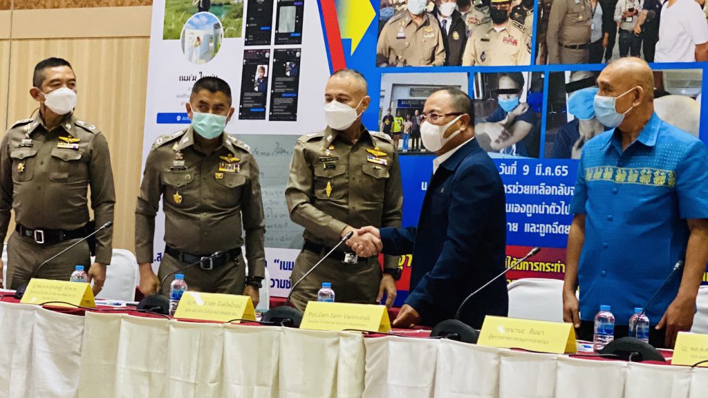 เมื่อวันที่ 18 มีนาคม 2565 ที่สำนักงานตำรวจแห่งชาติ (ตร.) พล.ต.อ.รอย อิงคไพโรจน์ รอง ผบ.ตร. และ ผอ.ศพดส.ตร. พร้อมด้วย พล.ต.ท.สุรเชษฐ์ หักพาล ผู้ช่วย ผบ.ตร. ในฐานะ รอง ศพดส.ตร. พร้อมทั้ง พล.ต.อ.วรรณวีระ สม ผู้ช่วยผู้บัญชาการตำรวจ ประเทศกัมพูชา ร่วมแถลงกรณีที่ปรากฏข่าวทางสื่อโซเชียลมีเดียและสื่อโทรทัศน์ต่าง ๆ