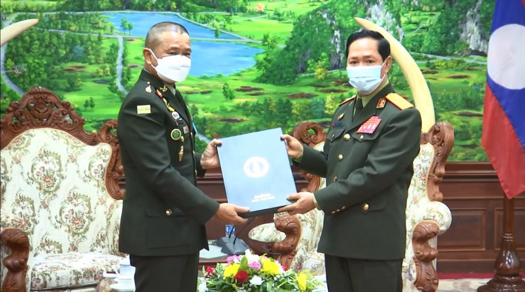 การเยือนในครั้งนี้ ผู้บัญชาการทหารบก ยังได้เข้าหารือข้อราชการกับพลตรี คำเลียง อุทะไกสอน หัวหน้ากรมใหญ่เสนาธิการกองทัพ (เทียบเท่าผู้บัญชาการทหารสูงสุด) และ พลจัตวา พันแสง บุนพัน รองหัวหน้ากรมใหญ่เสนาธิการกองทัพ (เทียบเท่าผู้บัญชาการทหารบก) โดยได้แสดงความชื่นชม สปป.ลาวที่กำหนดนโยบายการแก้ไขปัญหายาเสพติดเป็นวาระแห่งชาติ เมื่อสิงหาคม 2564 ส่งผลให้มีการจับกุมยาเสพติดได้จำนวนมากในห้วงที่ผ่านมาและยังได้เสนอให้มีการฝึกร่วม/ผสม ของหน่วยรบพิเศษในลักษณะการฝึกแลกเปลี่ยนของหน่วยทหารขนาดเล็กและการแลกเปลี่ยนศึกษาดูงานในด้านอื่นๆรวมทั้งความร่วมมือในการสกัดกั้นยาเสพติดและสิ่งผิดกฎหมายตลอดแนวชายแดนผ่านคณะทำงานและชุดประสานงานประจำพื้นที่ชายแดนไทย – สปป.ลาว ในการลาดตระเวนร่วมตามลำแม่น้ำโขง เพื่อให้เกิดความสงบเรียบร้อยตามแนวชายแดนของทั้งสองประเทศควบคู่กับความร่วมมือในโครงการหมู่บ้านเข้มแข็งคู่ขนานตามแนวชายแดนเพื่อส่งเสริมความมั่นคงและปลอดภัยของประชาชนที่อาศัยอยู่บริเวณแนวชายแดน ไทย-สปป.ลาว ตลอดจนเสริมสร้างการค้าชายแดนระหว่างกัน นอกจากนี้ทั้งสองประเทศยังให้ความสำคัญกับการเสริมสร้างความร่วมมือด้านการรับมือกับภัยพิบัติทางธรรมชาติ การแพร่ระบาดของโรคระบาดบริเวณแนวชายแดนในอนาคต