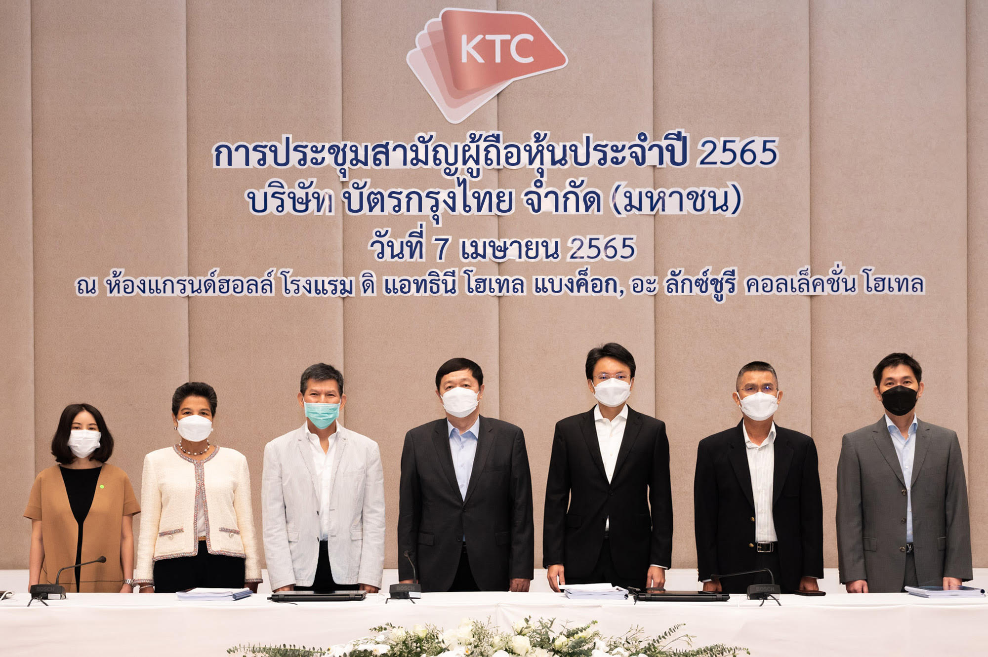 นายประสงค์ พูนธเนศ ประธานกรรมการ และประธานกรรมการสรรหาและกำหนดค่าตอบแทน พร้อมด้วยนายระเฑียร ศรีมงคล กรรมการและประธานเจ้าหน้าที่บริหาร “เคทีซี” หรือ บริษัท บัตรกรุงไทย จำกัด (มหาชน) และคณะกรรมการบริษัทฯ ได้จัดประชุมสามัญผู้ถือหุ้นประจำปี 2565 โดยที่ประชุมผู้ถือหุ้นมีมติอนุมัติการจ่ายเงินปันผลประจำปี 2564 ให้แก่ผู้ถือหุ้นในอัตราหุ้นละ 1.00 บาท ในวันที่ 6 พฤษภาคม 2565 รวมเป็นเงินทั้งสิ้น 2,578,334,070 บาท คิดเป็นสัดส่วนร้อยละ 41.25 ของกำไรสุทธิสำหรับปี 2564
