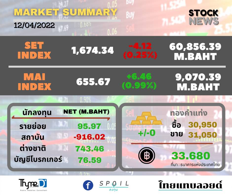 ตลาดหลักทรัพย์ ปิดวันนี้ที่ระดับ 1,672.34 จุด ลดลง 4.12 จุด (-0.25%) มูลค่าการซื้อขาย 60,856.39 ล้านบาท