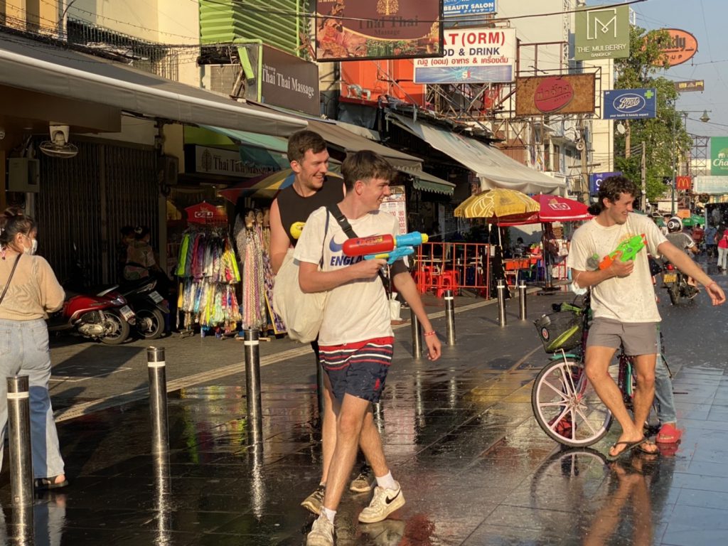 ขณะที่ผู้ค้าในถนนข้าวสาร รายหนึ่งกล่าวว่า ถนนข้าวสาร ไม่ได้จัดกิจกรรมเล่นน้ำสงกรานต์ 2 ปีแล้ว ตั้งแต่มีโควิค-19 แต่อย่างไรก็ตาม ถนนข้าวสารจะเป็นที่รู้จักของชาวไทยและต่างชาติ เมื่อถึงวันสงกรานต์ต้องมาที่นี้ ส่วนที่เห็นนักท่องเที่ยวเล่นน้ำกันเป็นไปตามธรรมชาติ เขาอยากมาเล่นน้ำเป็นการสร้างบรรยากาศวันสงกรานต์