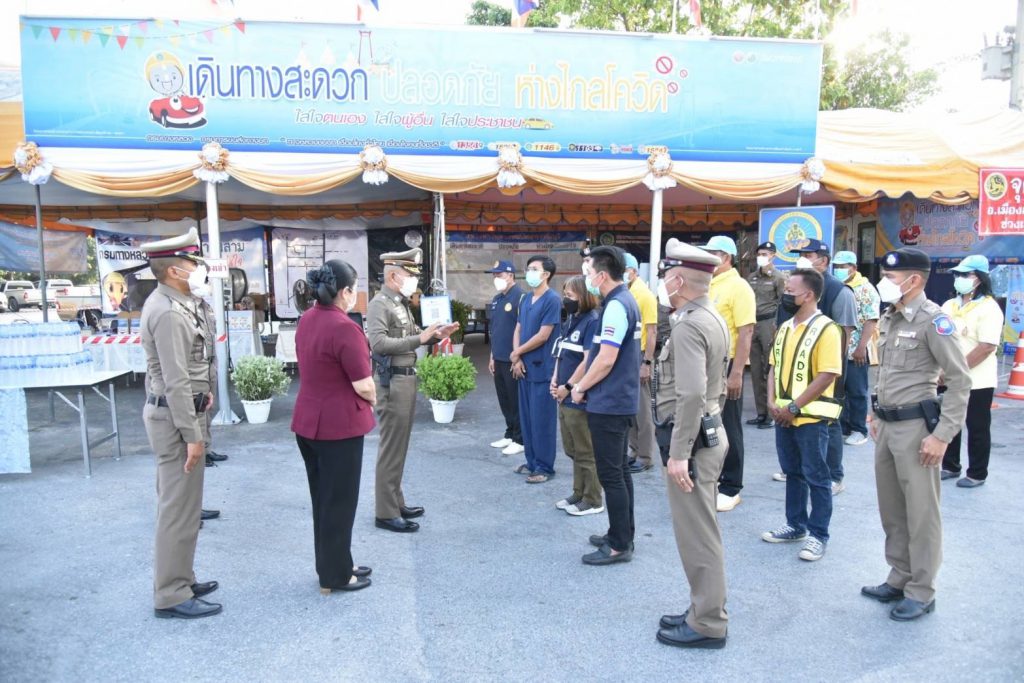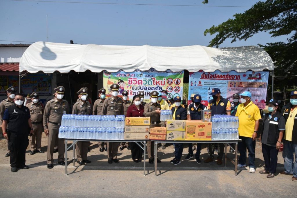 จากตรวจเยี่ยมเจ้าหน้าที่ปกครอง สาธารณสุขร่วมกับเจ้าหน้าที่ตำรวจกำลังปฏิบัติหน้าที่เป็นไปโดยเรียบร้อยทั้งนี้ได้มอบเครื่องอุปโภคบริโภคเพื่อเป็นขวัญกำลังใจให้กับกำลังพลและเจ้าหน้าที่ผู้ปฏิบัติหน้าที่จุดบริการประชาชนดังกล่าว และเน้นย้ำให้ประชาสัมพันธ์ให้ประชาชนที่เดินทางขับขี่ด้วยความปลอดภัย