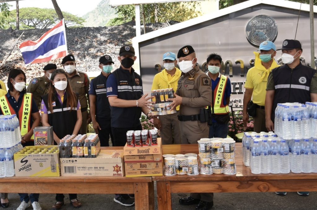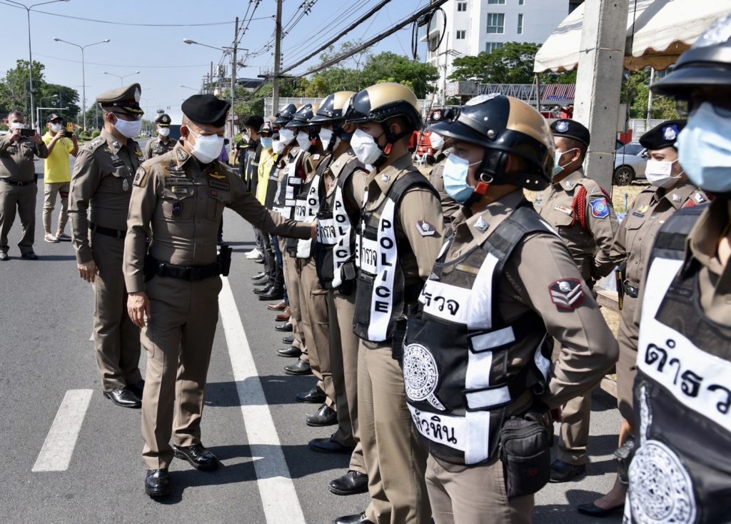 จากตรวจเยี่ยมเจ้าหน้าที่ปกครอง สาธารณสุขร่วมกับเจ้าหน้าที่ตำรวจกำลังปฏิบัติหน้าที่เป็นไปโดยเรียบร้อยทั้งนี้ได้มอบเครื่องอุปโภคบริโภคเพื่อเป็นขวัญกำลังใจให้กับกำลังพลและเจ้าหน้าที่ผู้ปฏิบัติหน้าที่จุดบริการประชาชนดังกล่าว และเน้นย้ำให้ประชาสัมพันธ์ให้ประชาชนที่เดินทางขับขี่ด้วยความปลอดภัย ต่อจากนั้นคณะดังกล่าวได้เดินทางต่อจุดบริการประชาชน (จุดบริการบ่อฝ้าย) ถ.เพชรเกษม ต.หัวหิน อ.หัวหิน จ.ประจวบฯ เพื่อตรวจเยี่ยมมอบอาหารเครื่องดื่มเป็นกำลังใจใหัผู้ใต้บังคับบัญชาในสังกัด ภ.7