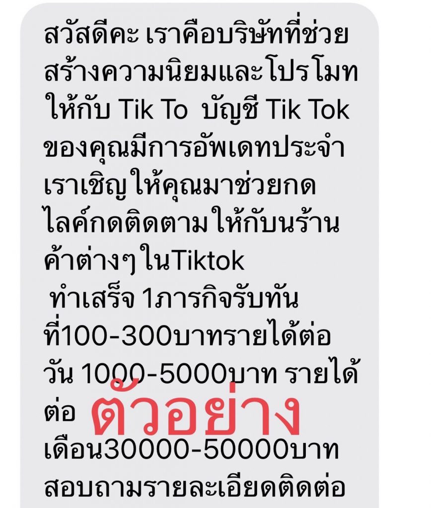 วันที่ 19 เมษายน 2565 ที่สำนักงานตำรวจแห่งชาติ (ตร.) พ.ต.อ.ศิริวัฒน์ ดีพอ รองโฆษก ตร. กล่าวว่า พล.ต.อ.สุวัฒน์ แจ้งยอดสุข ผบ.ตร. ได้มีนโยบายให้ สำนักงานตำรวจแห่งชาติ แจ้งเตือนและประชาสัมพันธ์ให้พี่น้องประชาชนรู้เท่าทันถึงอาชญากรรมทางเทคโนโลยี และได้กำชับให้เจ้าหน้าที่ตำรวจทำการสืบสวนจับกุมผู้กระทำผิดมาดำเนินคดีตามกฎหมายอย่างต่อเนื่องมาโดยตลอด ปัจจุบันสำนักงานตำรวจแห่งชาติ พบว่า กลุ่มมิจฉาชีพ ได้หลอกลวงพี่น้องประชาชน โดยติดต่อผ่านโทรศัพท์ หรือข้อความผ่านช่องทางต่างๆ ชักชวนให้มาทำงาน อ้างว่าใช้เพียงบัญชีสื่อสังคมออนไลน์ เช่น TikTok เท่านั้น ไม่มีค่าใช้จ่าย และได้ผลตอบแทนสูง พร้อมทั้งได้ส่งช่องทางการติดต่อผ่านแอปพลิเคชัน Line แนบมาด้วย เมื่อเหยื่อหลงเชื่อติดต่อกับคนร้าย คนร้ายก็จะหลอกให้เหยื่อสมัครสมาชิกเว็บไซต์ที่คนร้ายส่งมาให้ จากนั้นเมื่อเข้าใช้งานจะพบว่าเป็นเว็บพนันออนไลน์ และมีการให้เครดิตเงินสำหรับเริ่มเล่นฟรี อีกทั้งยังมีหน้าม้าส่งข้อความอ้างว่าได้กำไรจริง เพื่อหลอกลวงให้เหยื่อลงเงินเพิ่ม และนำไปสู่การสูญเงินให้กับการพนัน ซึ่งมีประชาชนตกเป็นเหยื่อจำนวนมาก โดยขณะนี้อยู่ระหว่างการสืบสวนของเจ้าหน้าที่ตำรวจเพื่อนำตัวผู้กระทำความผิดมาดำเนินคดีตามกฎหมาย