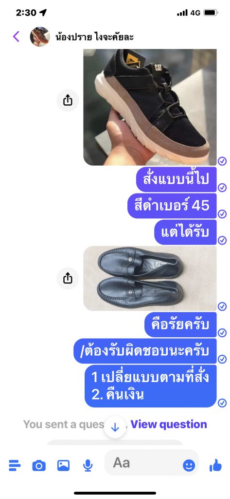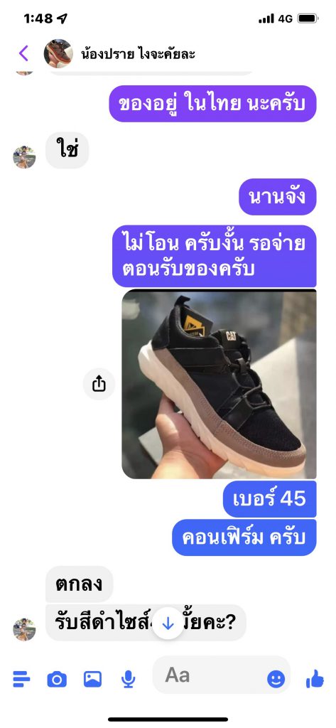 วันที่ 20 เมษายน 2565 ผู้สื่อข่าวรายงานว่า นายชาติชาย สุขสมนึก ผู้สื่อข่าวอาวุโส ประจำสำนักงานตำรวจแห่งชาติ(ตร.) สังกัดสื่อสำนักหนึ่ง เปิดเผยว่า ได้สั่งซื้อรองเท้าผ้าใบยี่ห้อ Cat ผ่านเฟซบุ๊คที่ใช้ชื่อว่า “น้องปราย ไงจะคัยละ” ซึ่งตกซื้อในราคา 700 บาท โดยนัดชำระค่าสินค้าเมื่อสินค้าถึงมือ ชำระเงินปลายทาง