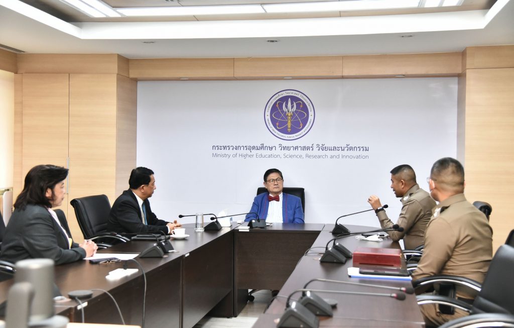 โดยมีศาสตราจารย์ ดร.นายแพทย์สิริฤกษ์ ทรงศิวิไล ปลัดกระทรวง อว. และ ดร.วิภารัตน์ ดีอ่อง ผู้อำนวยการสำนักงานการวิจัยแห่งชาติ ร่วมให้การต้อนรับ ที่ กระทรวง อว. ซึ่งนวัตกรรมสมาร์ทเซฟตี้โซน 4.0 ของ ตร.ได้รับการสนับสนุนจาก สำนักงานการวิจัยแห่งชาติ (วช.) กระทรวงการอุดมศึกษาวิทยาศาสตร์ วิจัยและนวัตกรรม เพื่อนำร่องในเขตพื้นที่กรุงเทพมหานคร เป็นลำดับแรก ในการพัฒนารูปแบบวิธีการป้องกันอาชญากรรมโดยใช้นวัตกรรมและยึดประชาชนเป็นศูนย์กลางตามแนวคิดเรื่อง “เมืองอัจฉริยะ”