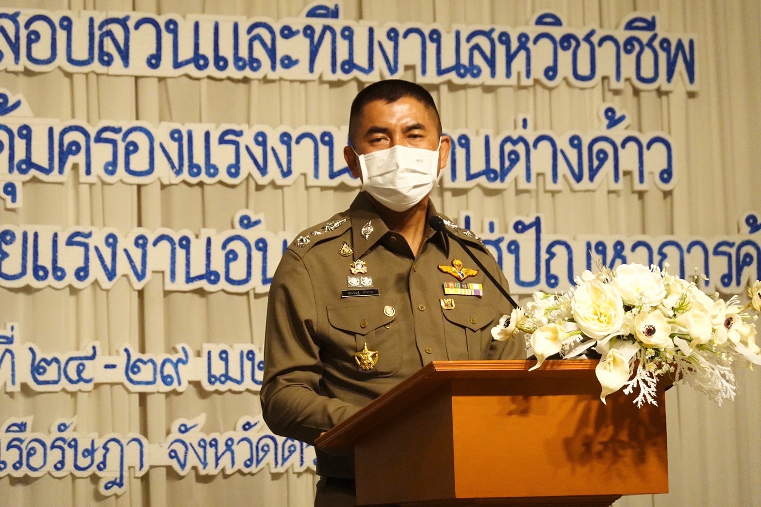 วันนี้ 25 เมษายน 2565 เมื่อเวลา 13.30 น.ที่โรงแรมเรือรัษฎา จว.ตรัง พล.ต.ท.สุรเชษฐ์ หักพาล ผู้ช่วย ผบ.ตร.,รอง ผอ.ศพดส.ตร.พร้อมด้วย พล.ต.ต.พนัญชัย ชื่นใจธรรม รอง ผบช.ภ.1 , พล.ต.ต.ศุภเศรษฐ์ โชคชัย รอง ผบช.ทท. พนักงานสอบสวน ทีมสหวิชาชีพ ร่วมพิธีเปิดการฝึกอบรมสัมมนา พนักงานสอบสวนและทีมงานสหวิชาชีพ เพื่อเพิ่มประสิทธิภาพด้านการคุ้มครองแรงงานแก่คนต่างด้าวและป้องกันการละเมิดสิทธิตามกฎหมายแรงงาน ซึ่งนำไปสู่คดีการค้ามนุษย์