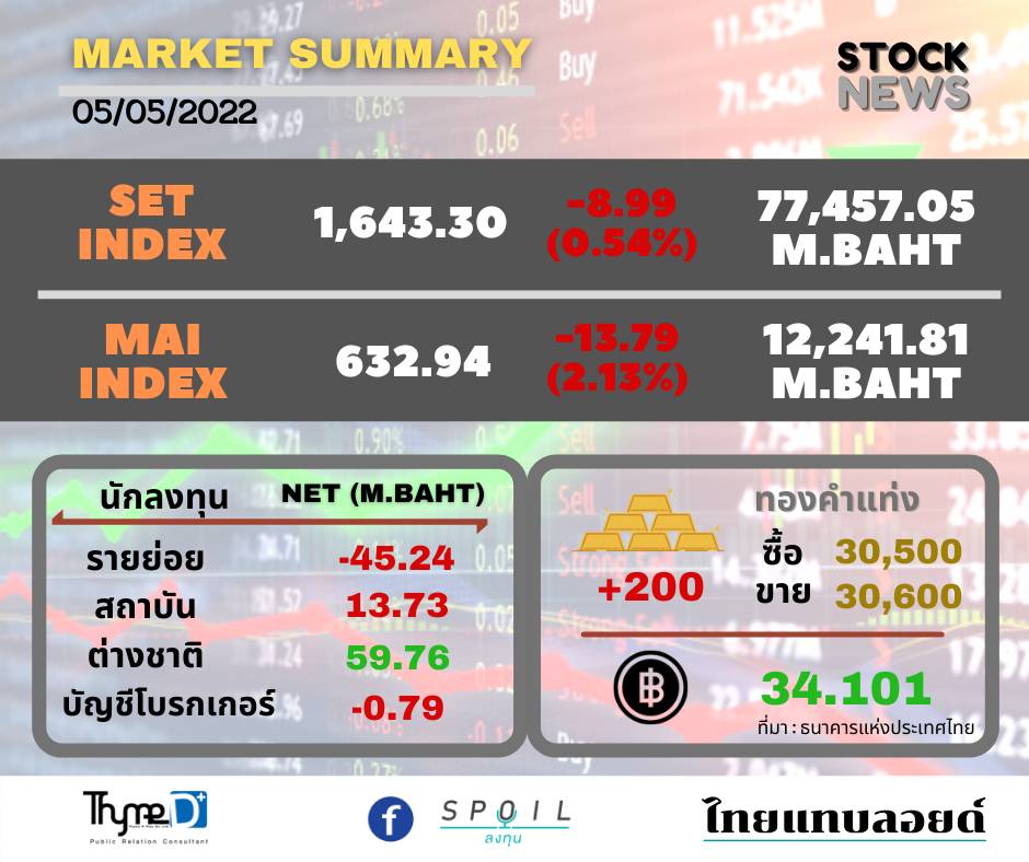 ภาวะการลงทุนในตลาดหลักทรัพย์ไทย ประจำวันที่ 5 พฤษภาคม 2565