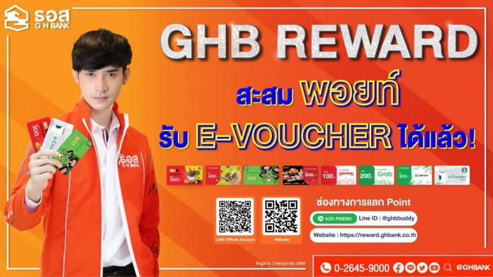 ธนาคารอาคารสงเคราะห์ (ธอส.) มอบสิทธิพิเศษให้กับลูกค้าที่สะสม “พอยท์” ในโครงการ GHB Reward สามารถนำพอยท์ มาแลกเป็น E-VOUCHER สำหรับซื้อสินค้าและบริการของร้านค้าชั้นนำที่ ธอส.คัดสรรมาเข้าร่วมโครงการเพื่อตอบโจทย์ไลฟ์สไตล์ของลูกค้าในยุคปัจจุบันได้แล้ววันนี้!! สะสมพอยท์ได้ง่าย ๆ อาทิลงทะเบียนใช้งาน Application GHB ALL หรือ เพิ่มเพื่อน GHB BUDDYและทำการผูกบัญชีครั้งแรกหรือทำธุรกรรม ตามที่ธนาคารกำหนดครั้งแรกผ่าน Application GHB ALL อาทิ เปิดบัญชีเงินฝากออมทรัพย์อิเล็กทรอนิกส์ เปิดใช้งานใบเสร็จชำระเงินกู้ อิเล็กทรอนิกส์ ขอรับหนังสือรับรองดอกเบี้ยเงินกู้และชำระเงินงวดทาง GHB ALL แต่ละงวด โดยสามารถแลกพอยท์ได้เองทุกที่ทุกเวลาผ่าน Mobile Application GHB ALL , GHB Buddy หรือเว็บไซต์ https://reward.ghbank.co.th/ และนำ E-Voucher