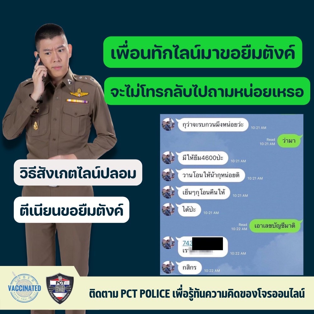 วันที่ 29 พฤษภาคม 2565 ที่สำนักงานตำรวจแห่งชาติ พล.ต.อ.ดำรงศักดิ์ กิตติประภัสร์ รอง ผบ.ตร. ผู้อำนวยการศูนย์ปราบปรามอาชญากรรมทางเทคโนโลยีสารสนเทศ สำนักงานตำรวจแห่งชาติ (ศปอส.ตร.) หรือ PCT เปิดเผยเรื่องนี้ว่า ได้รับรายงานจากฝ่ายรับแจ้งความออนไลน์ ว่ามีผู้เสียหาย ถูกคนร้ายแฮ็ก Facebook แล้วใช้บัญชี Line หลอกยืมเงินเพื่อน สร้างความเสียหายจำนวนมาก ซึ่งยังเกิดขึ้นอยู่อย่างต่อเนื่องในปัจจุบัน