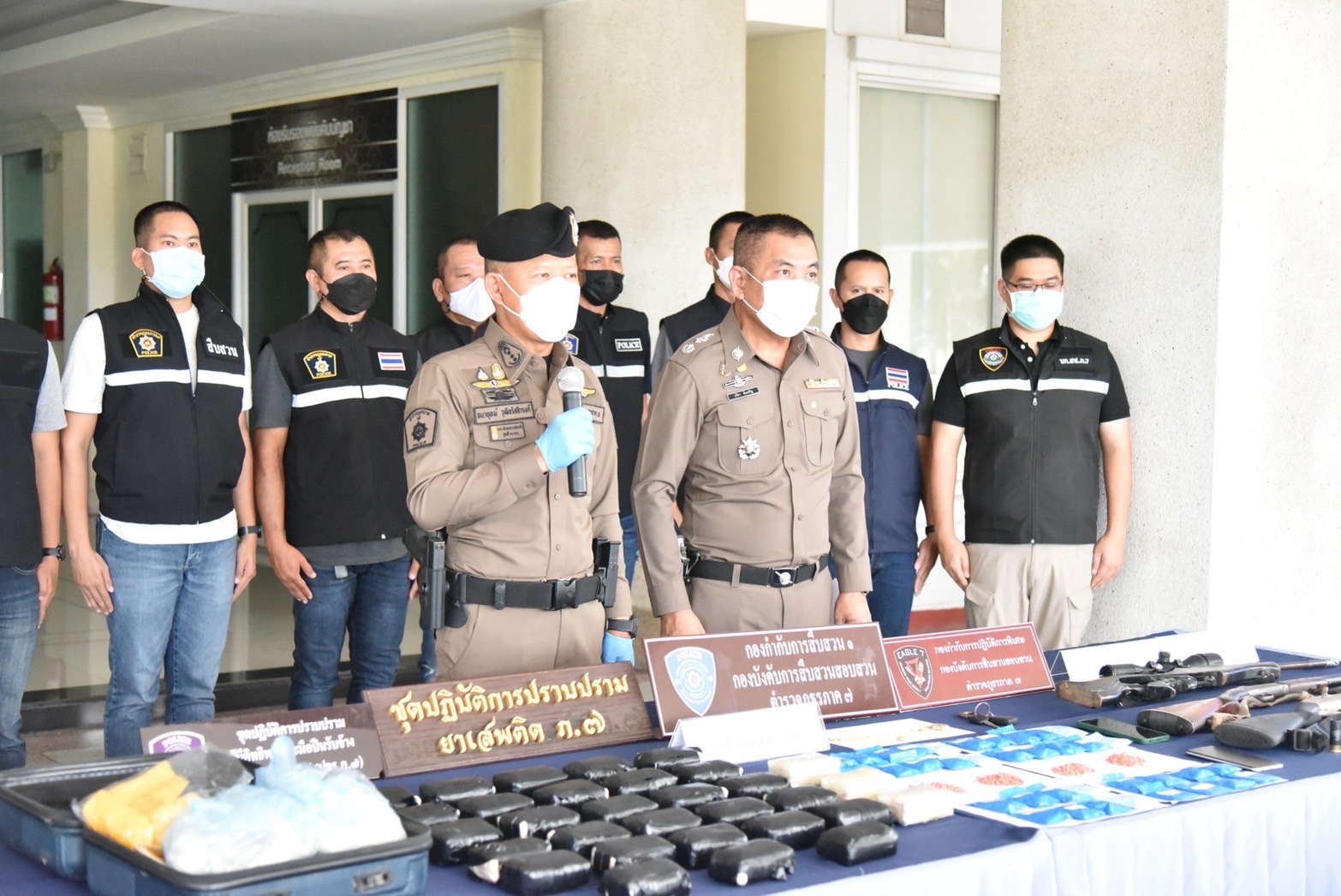 ยึดยาบ้าเกือบ 7 หมื่นเม็ดพร้อมอาวุธ ของกลางอีกเพียบ ยึดทรัพย์จำนวน 1,017,562 บาท