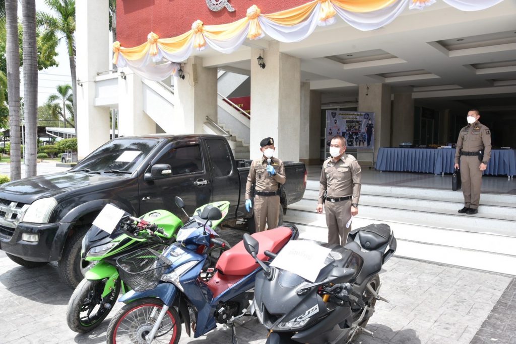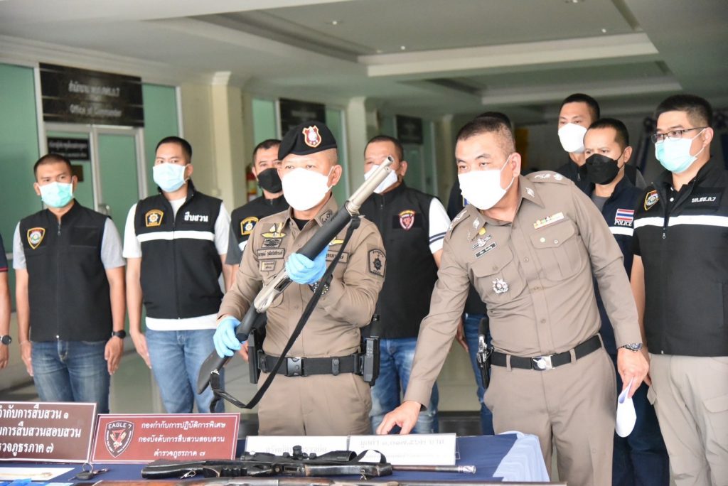 พล.ต.ท.ธนายุตม์ กล่าวว่า ของกลางเป็น ยาเสพติดให้โทษประเภทที่ 1 (ยาบ้า) จำนวนรวม 69,200 เม็ด-อาวุธปืนลูกซองแบบกึ่งอัตโนมัติ ยี่ห้อ Hatsan ขนาด เบอร์ 12 จำนวน 1 กระบอก -อาวุธปืนลูกซองเดี่ยว ขนาด เบอร์ 12 จำนวน 1 กระบอก-อาวุธปืนยาวไทยประดิษฐ์ ขนาด .22 มม. จำนวน 1 กระบอก-เครื่องกระสุนปืน ขนาด เบอร์ 12 จำนวน 5 นัด -รถยนต์ ยี่ห้อ Isuzu รุ่น D-max สี ดำ ทะเบียน ผข 3655 ราชบุรี -รถจักรยานยนต์ ยี่ห้อ Yamaha รุ่น R15 สี ดำ ทะเบียน 3ขอ 6638 กทม-รถจักรยานยนต์ ยี่ห้อ ฮอนด้า รุ่นเวฟ 125 i ทะเบียนป้ายแดง รวย 8806 ฮอนด้ากาญจนบุรี