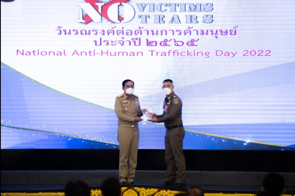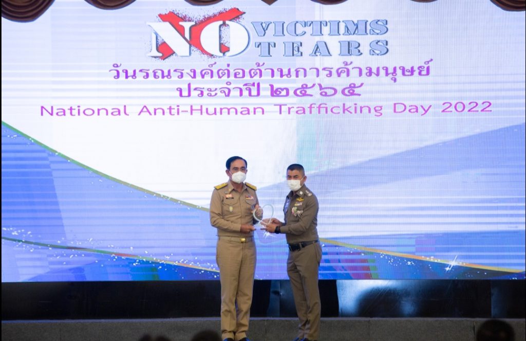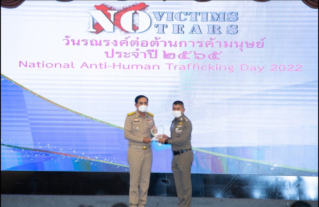 วันที่ 6 มิถุนายน 2565 ที่ตึกสันติไมตรีทำเนียบรัฐบาล พลเอกประยุทธ์จันทร์โอชานายกรัฐมนตรีเป็นประธานเปิดงานวันรณรงค์ต่อต้านการค้ามนุษย์ประจำปี 2565 ที่ตึกสันติไมตรีทำเนียบรัฐบาลโดยมีผู้แทนองค์กรระหว่างประเทศและผู้ปฏิบัติงานจากหน่วยงานที่เกี่ยวข้องจากภาครัฐทั้ง 76 จังหวัดเข้าร่วมงานและรับมอบรางวัลการต่อต้านการค้ามนุษย์ในรูปแบบต่างๆ ซึ่งการจัดงานในวันนี้เพื่อมุ่งแสดงเจตนารมย์ความมุ่งมั่นของรัฐบาลไทยในการป้องกันและปราบปรามการค้ามนุษย์ให้หมดสิ้นไปจากประเทศไทย ภายใต้แนวทางไม่มีผู้เสียหายไม่มีน้ำตาจากการค้ามนุษย์ ซึ่งเป็นการแสดงออกถึงความร่วมมือและความตั้งใจของทุกหน่วยงานที่จะต่อต้านการค้ามนุษย์โดยมีเป้าหมายร่วมกันในทุกมิติ