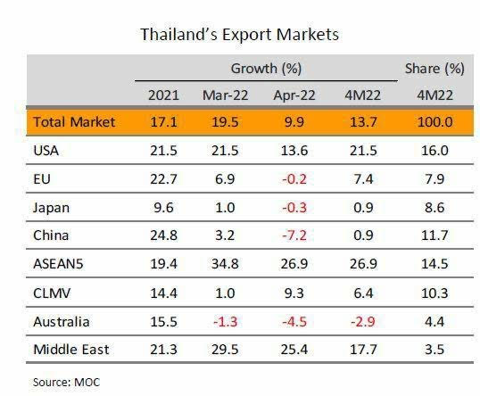 ลงจากที่เติบโตได้ 13.7% ในช่วง 4 เดือนแรกของปี แต่อย่างไรก็ตาม คาดว่ามูลค่าส่งออกทั้งปี 2565 จะยังเติบโตได้ประมาณ 6%