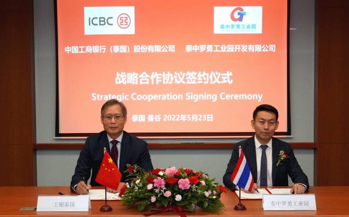 นายเสี่ยวปอ หลี่ ประธานเจ้าหน้าที่บริหาร ธนาคารไอซีบีซี (ไทย) จำกัด (มหาชน) (ซ้าย) ร่วมลงนามกับนายปิน เจ้า ประธานกรรมการ บริษัท พัฒนาอสังหาริมทรัพย์เพื่อการอุตสาหกรรมระยอง ไทย-จีน จำกัด (ขวา) ในสัญญาความร่วมมือเชิงกลยุทธ์แบบทวิภาคี โดยธนาคารไอซีบีซี (ไทย) จะทำหน้าที่เป็นที่ปรึกษาด้านการเงินและการลงทุน พร้อมทั้งส่งเสริมนักลงทุนที่มีศักยภาพให้เข้ามาร่วมลงทุนในพื้นที่นิคมอุตสาหกรรมอมตะ ซิตี้ ระยอง รวมถึงการสนับสนุนทางการเงินแก่นักลงทุน โดยเฉพาะกลุ่มบริษัทจากประเทศจีนที่ให้ความสนใจเข้ามาลงทุน ทั้งนี้ เพื่อให้สอดคล้องกับที่ธนาคาร ได้ร่วมลงนามบันทึก ความเข้าใจกับสำนักงานคณะกรรมการนโยบายเขตพัฒนาพิเศษภาคตะวันออก หรือ EEC ไปแล้วก่อนหน้านี้